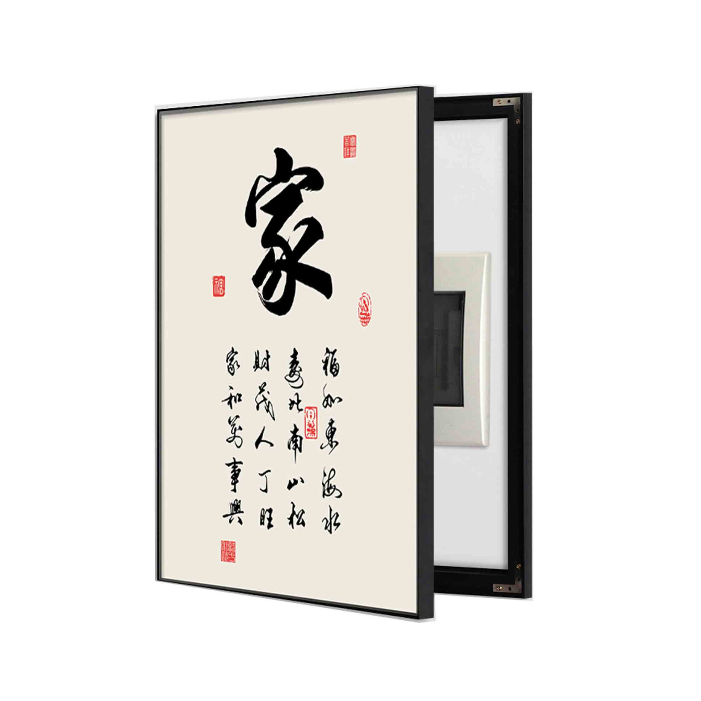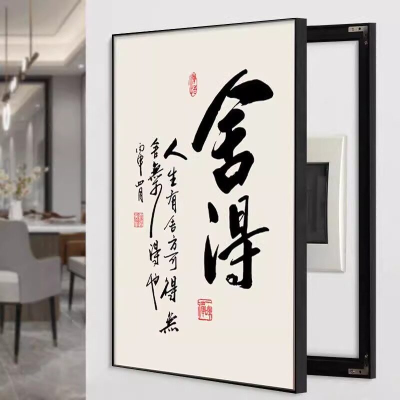 📚 中式竖款书法静心电表箱装饰画免打孔餐客厅配电闸箱弱电盒遮挡画