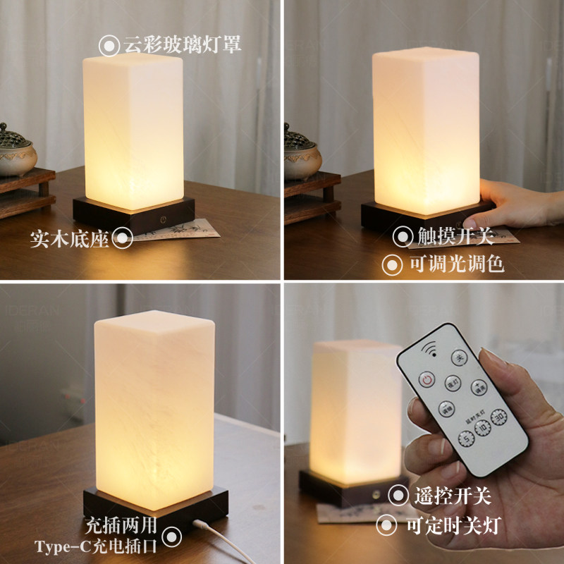 📚 新中式复古卧室床头灯台灯装饰充电玻璃高级感温馨浪漫睡眠氛围灯