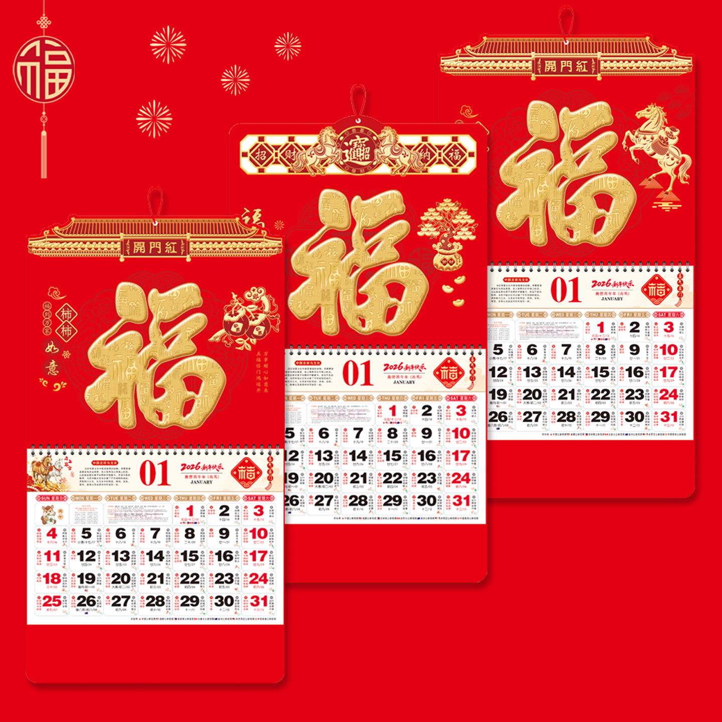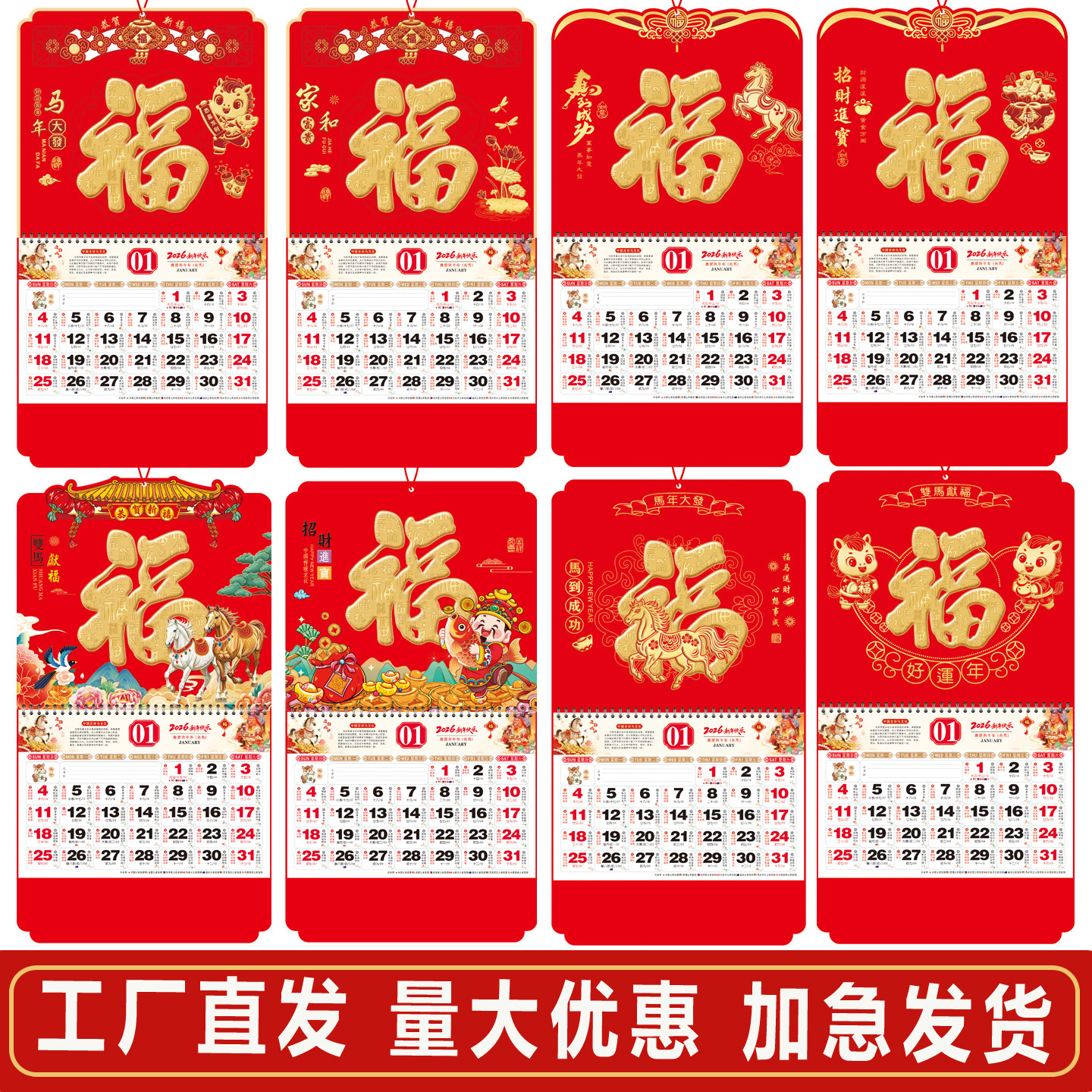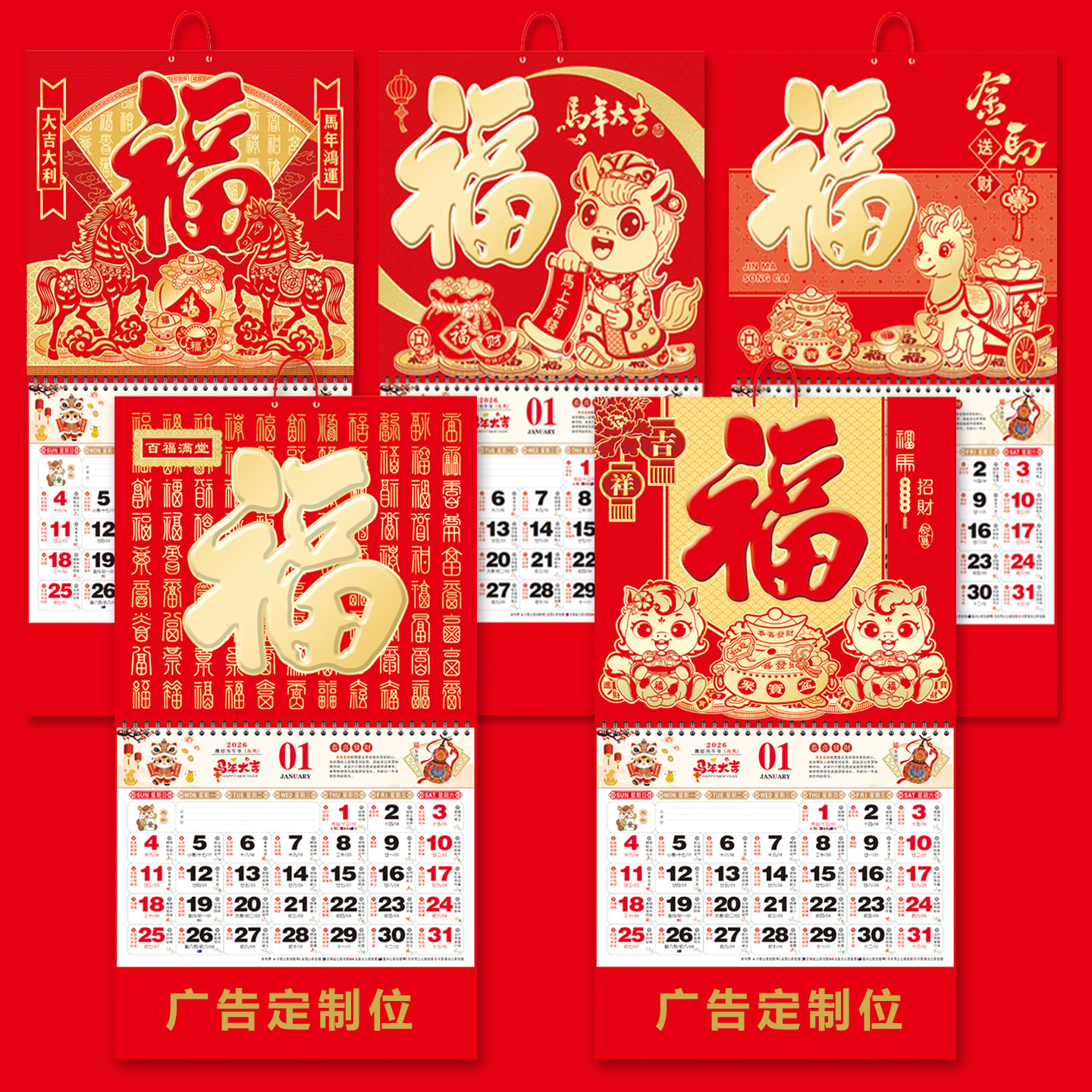 📚 2026年新款挂历手撕月历马年福字金箔吊牌大号加厚定制广告中国节庆挂饰家用挂墙福创意月历银行保险印制广告