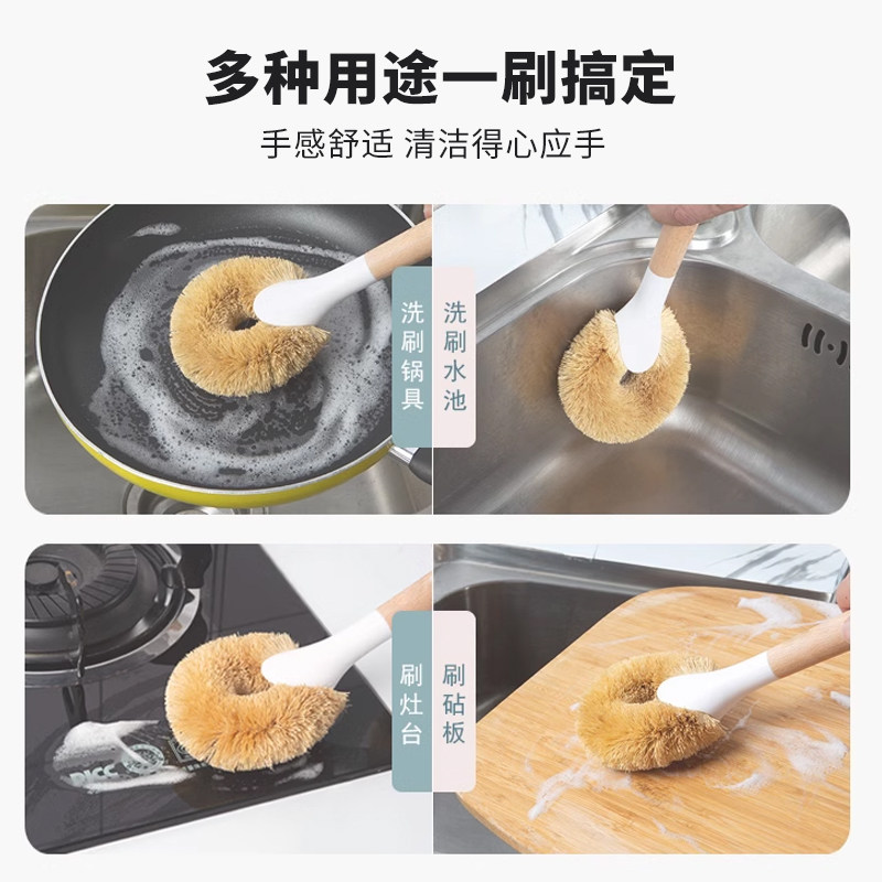 📚 天然椰棕锅刷棕j毛棕榈长柄洗锅刷锅刷子神器厨房专用不沾油去油