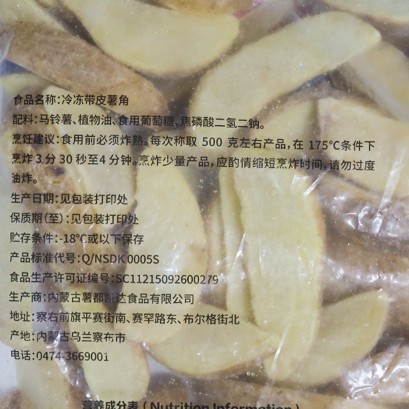 📚 整箱 凯达原味带皮薯角6包x2kg冷冻薯条油炸土豆角半成品小吃商用