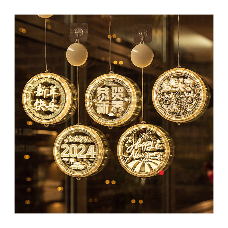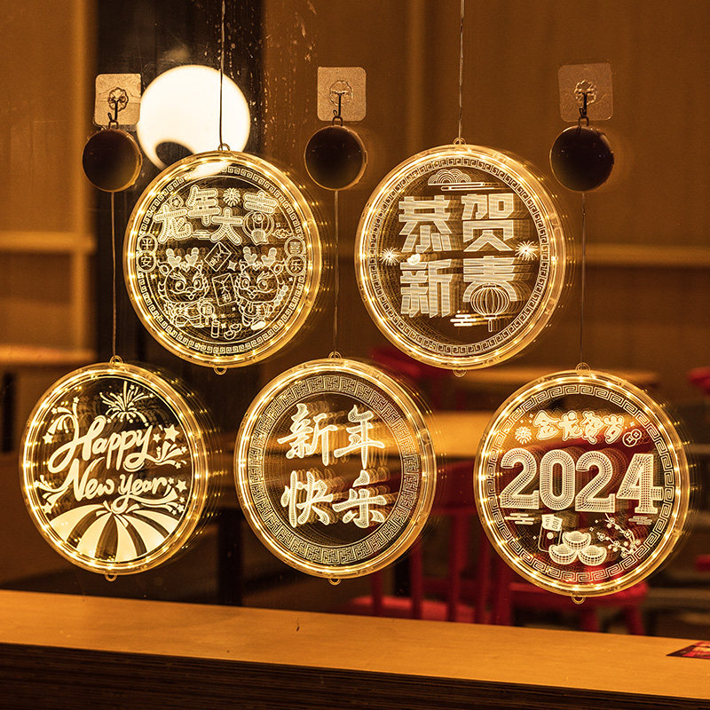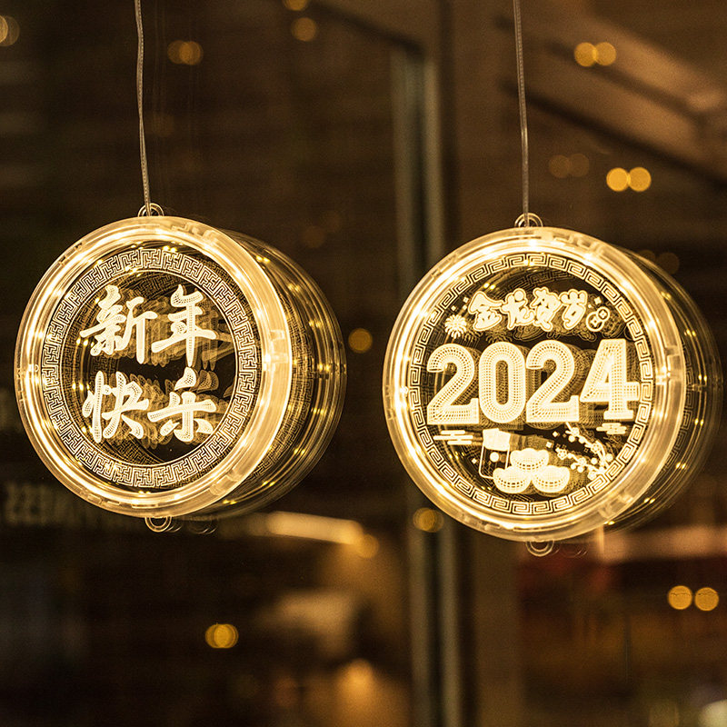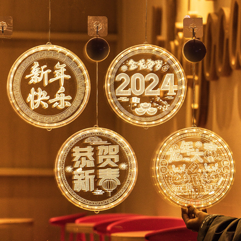 📚 2024新款新年装饰红灯笼春节挂饰过年吸盘灯挂件龙年阳台led花灯