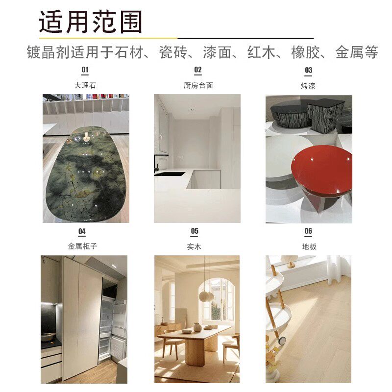 📚 石材镀晶剂大理石英石台面翻新瓷砖腐蚀修复除划痕返碱增亮剂结晶