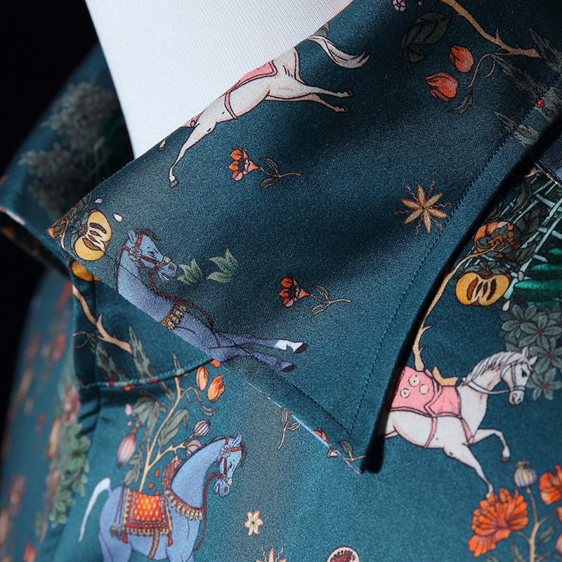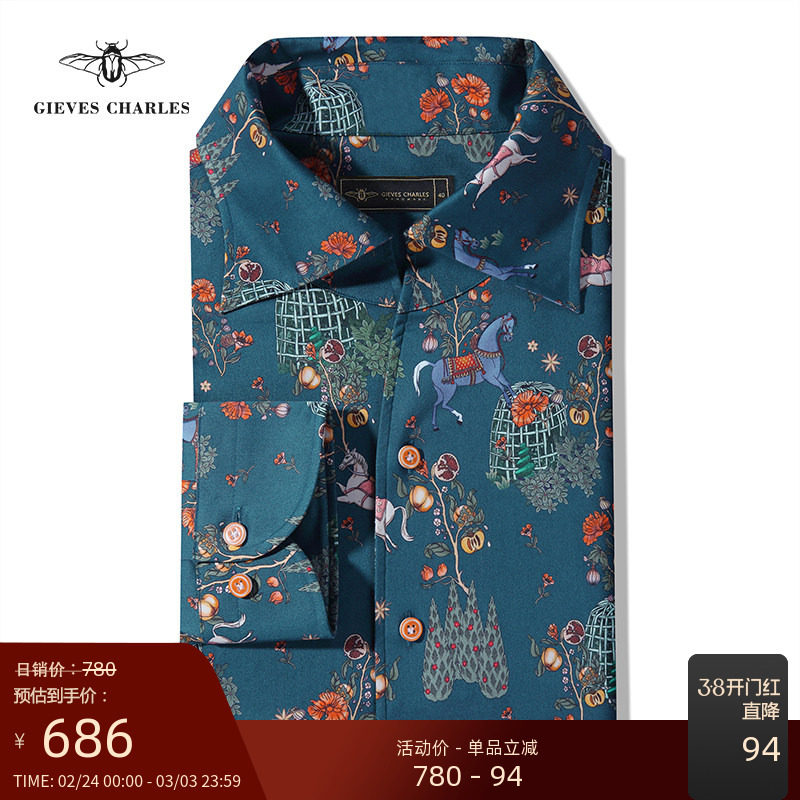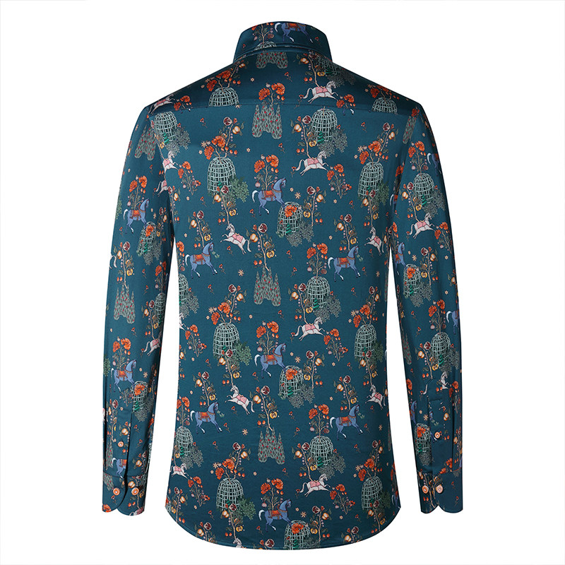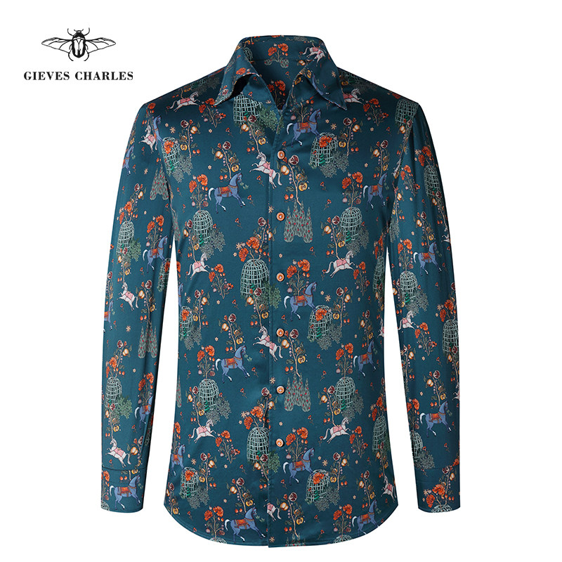 📚 【重磅新品】花车巡游印花高端休闲衬衫男痞帅意式一片领长袖衬衣