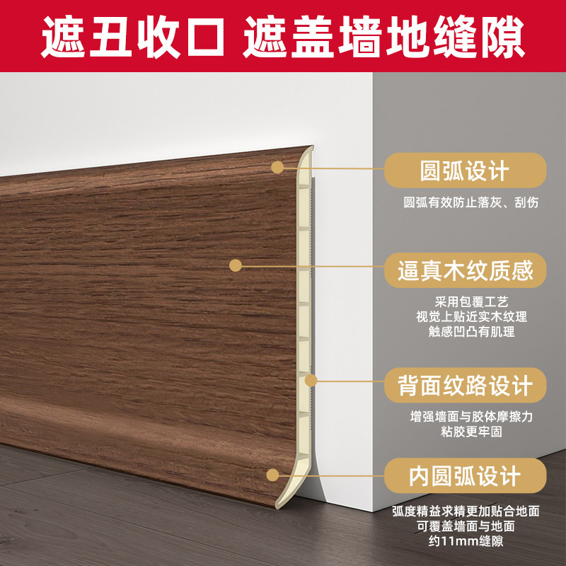 📚 木纹PVC自粘式5公分踢脚线家用木地板7公分墙角装饰防水踢脚板