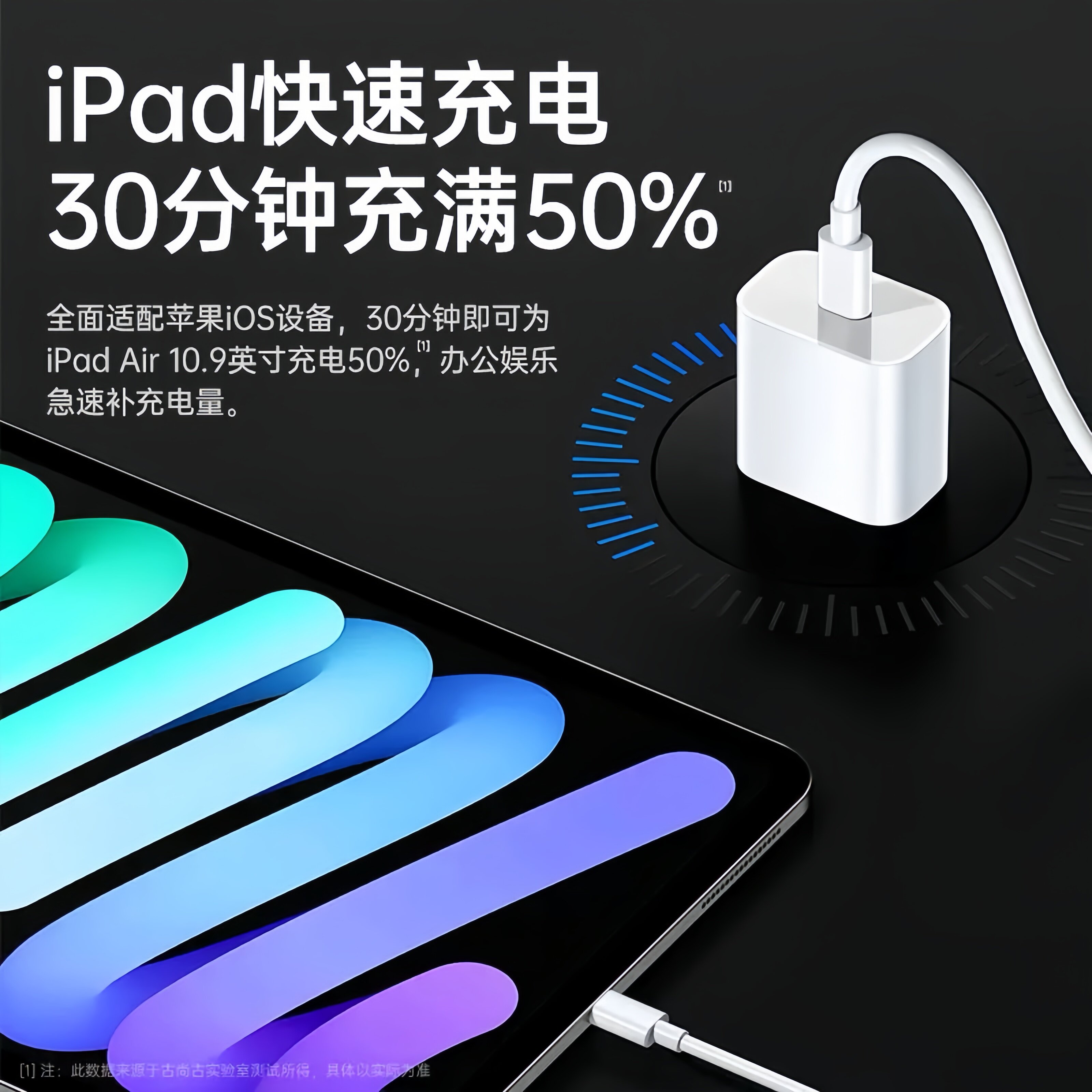 📚 适用苹果iPad Air3数据线30W瓦PD快充10.5英寸平板ipad air3充电线iPad Air2 9.7寸平板数据线ipadair2充电线