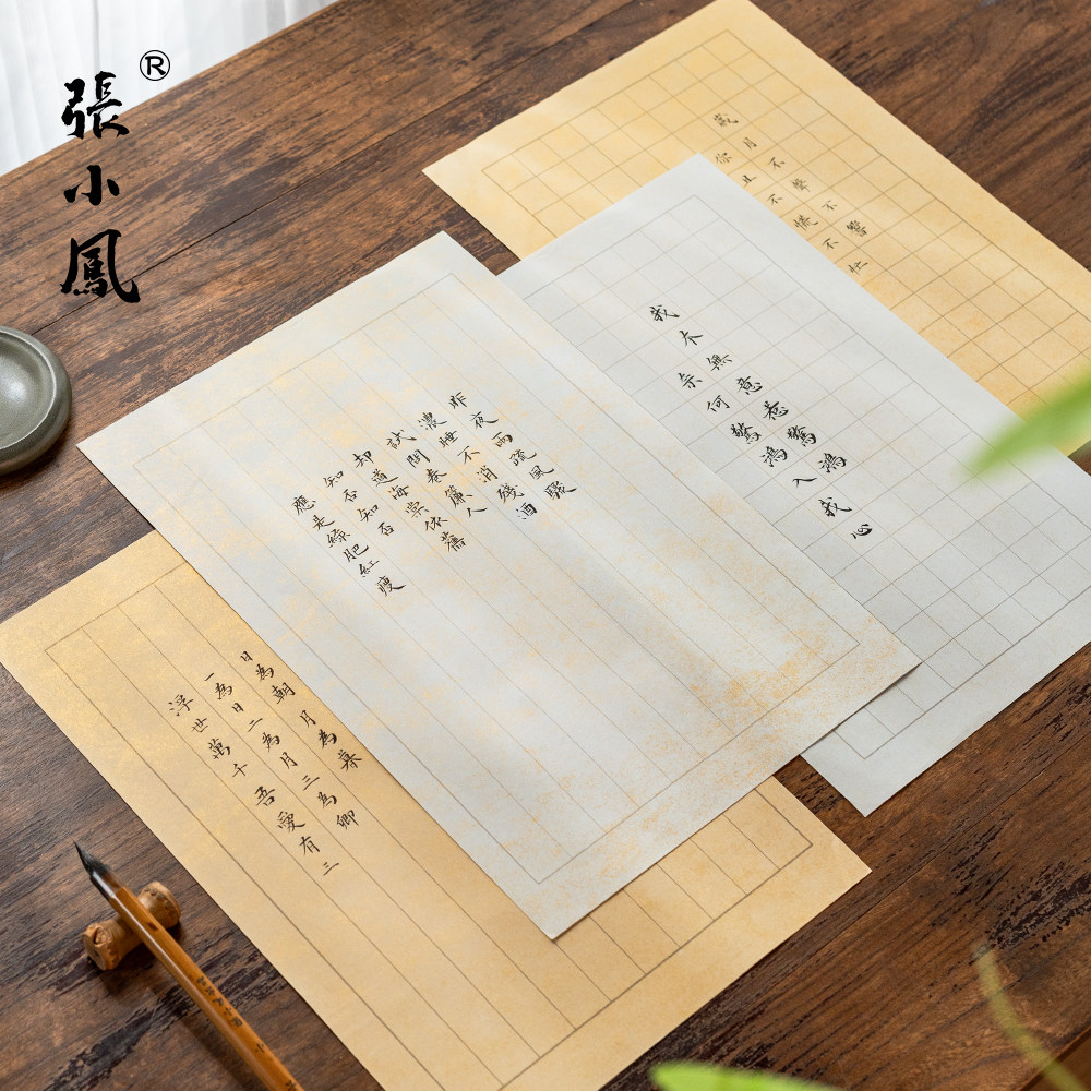 📚 张小凤 蜡染鎏金日课纸小楷书法纸半生熟纸书法专用毛笔字练习纸作品纸初学者练字篆书隶书练字手札信笺