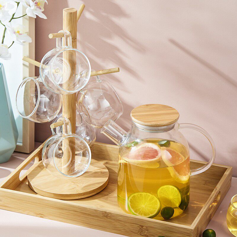 📚 日式冷水壶耐热玻璃煮花茶壶凉白开水杯耐高温家用套装果茶凉水壶