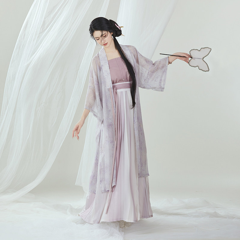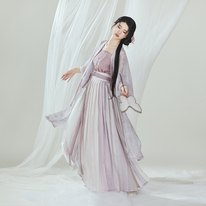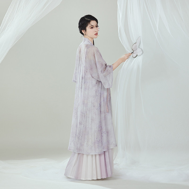 📚 织造司原创明制汉服[万物生长]合领半袖水墨长衫改良刺绣主腰褶裙