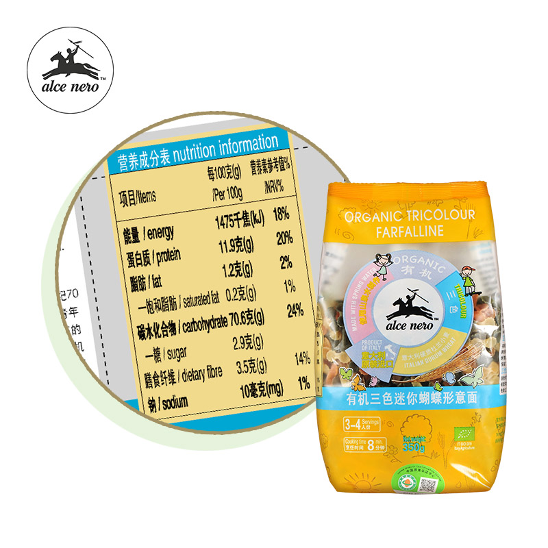 📚 Alce Nero有机尼奥有机三色迷你蝴蝶形意面350g速食意大利面条