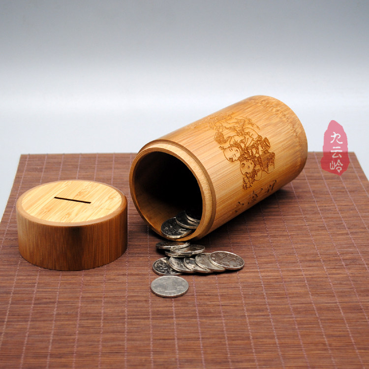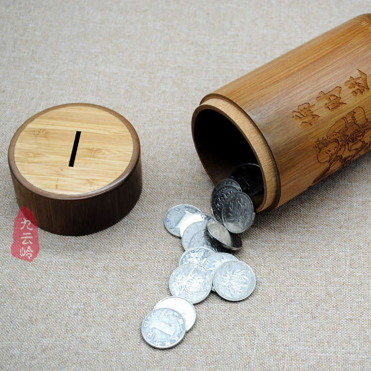 📚 竹筒存钱罐储蓄罐超大竹编儿童竹子招财竹互存钱罐创意个性带盖式