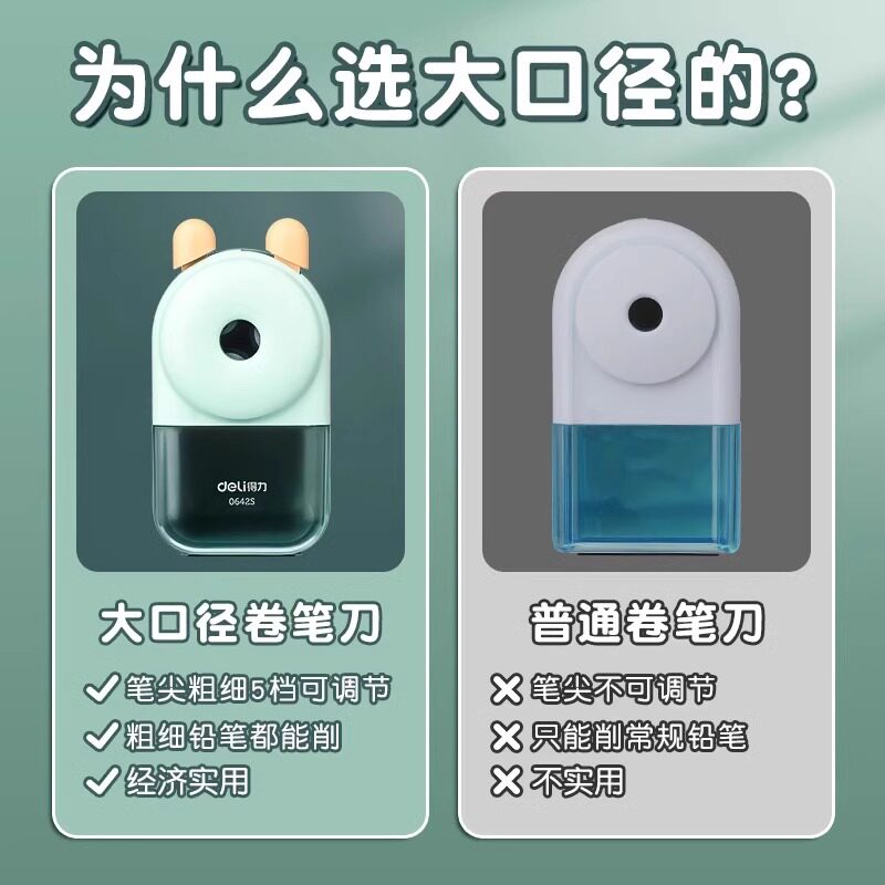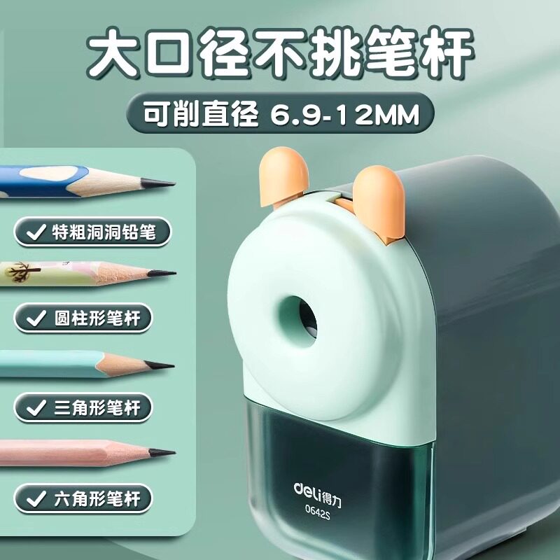 📚 得力卷笔刀小学生专用粗笔特粗洞洞笔思乐笔三角大口径手摇转笔刀