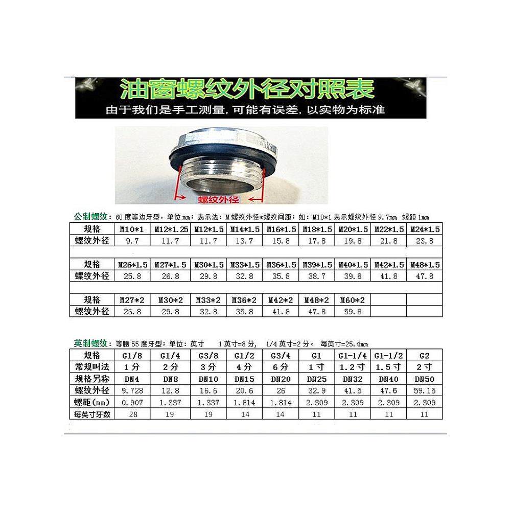 📚 六角铝合金油窗油标视油镜油位镜减速机油位观察镜耐高温钢化玻璃