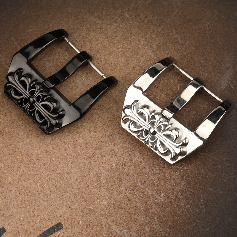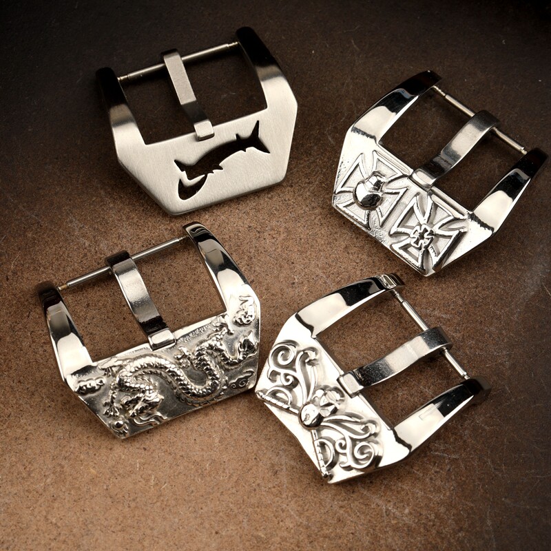 📚 316精钢雕刻银色表扣 20 22 24 26MM 适配沛纳海男真皮表带表扣