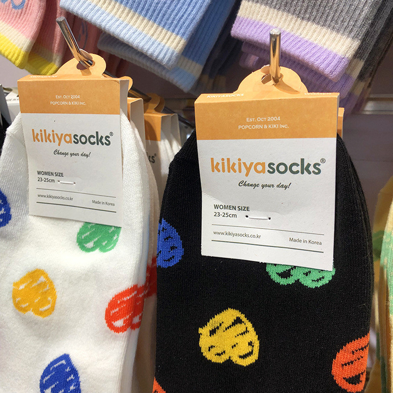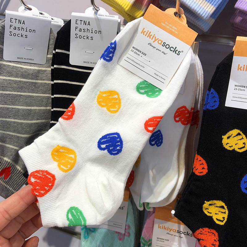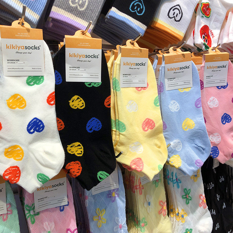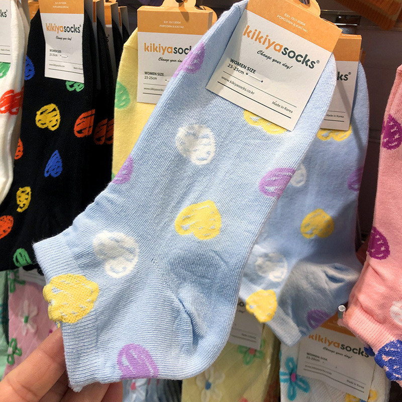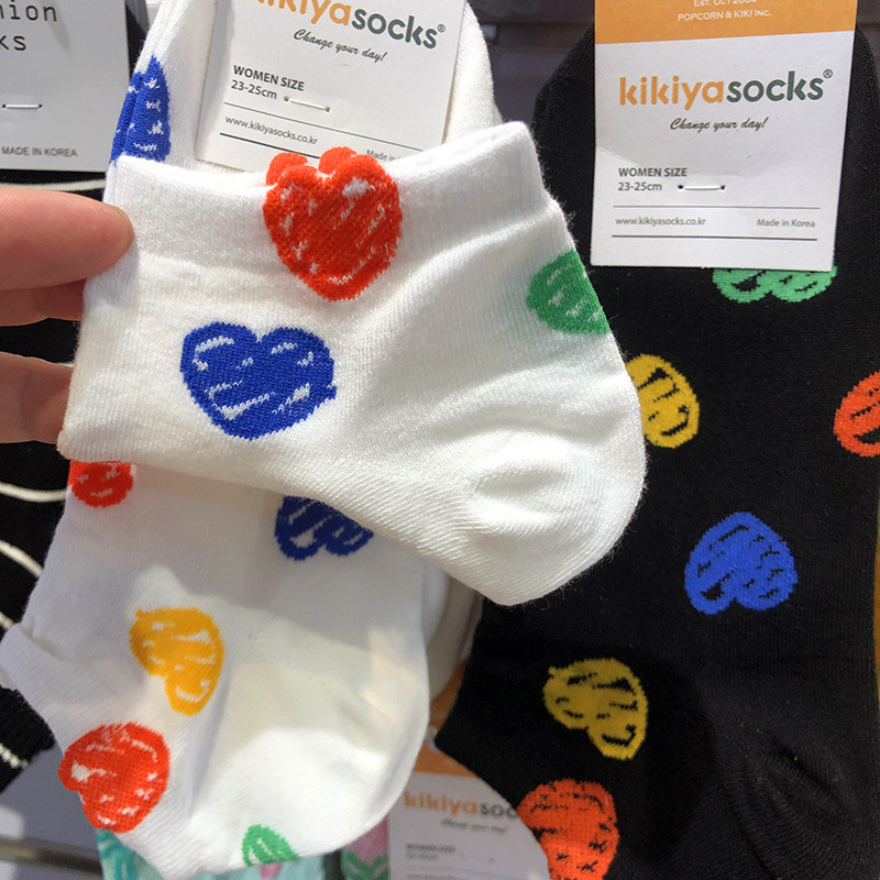 📚 2025韩国kikiya春夏新款袜子多巴胺涂鸦爱心少女袜低腰短棉袜1195