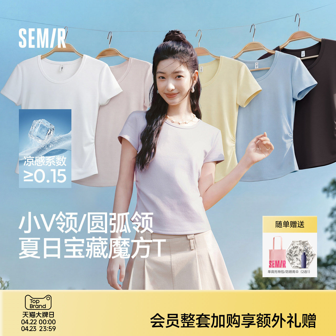 📚 陈都灵|凉感T森马短袖T恤女夏圆领收腰修身2026新款内搭上衣白色