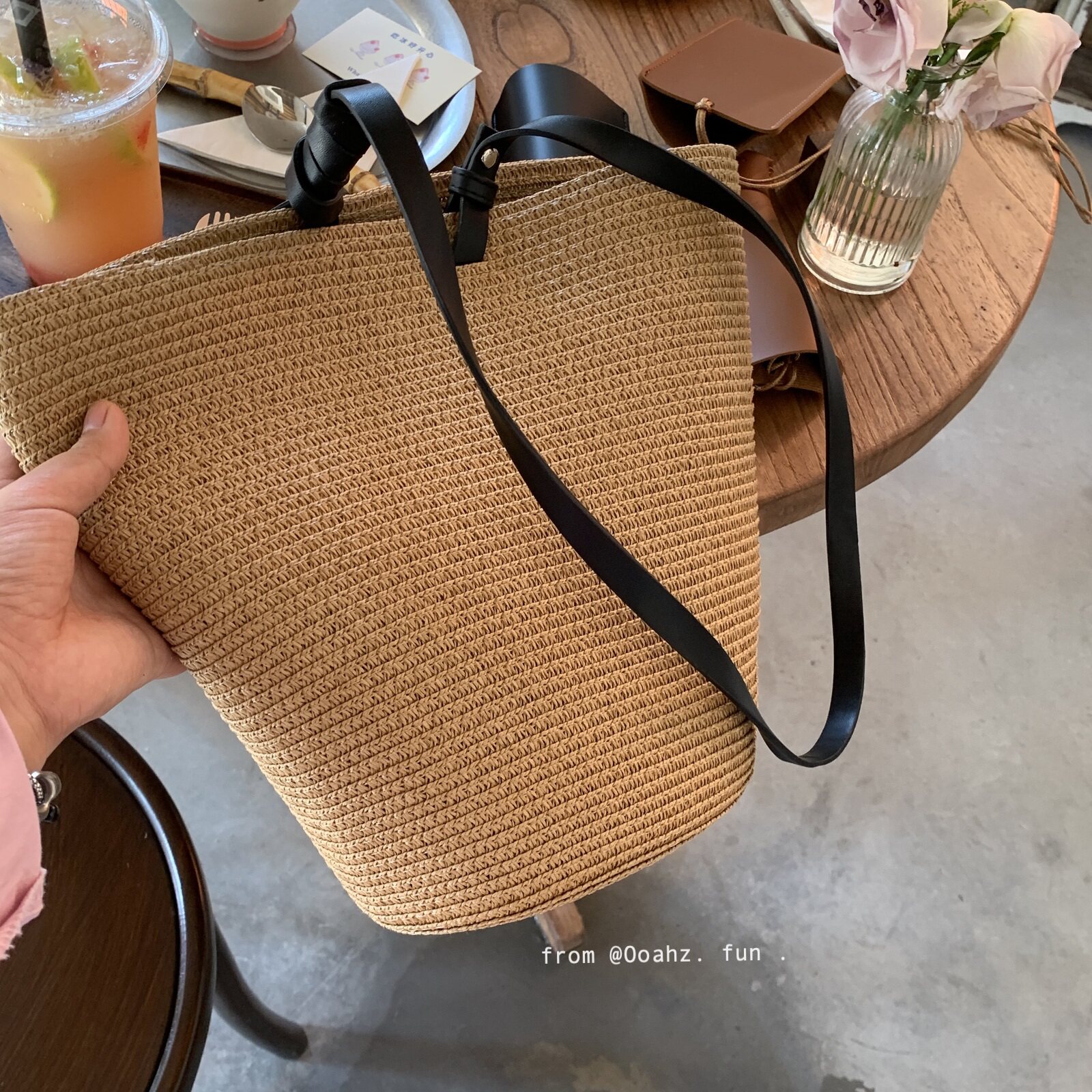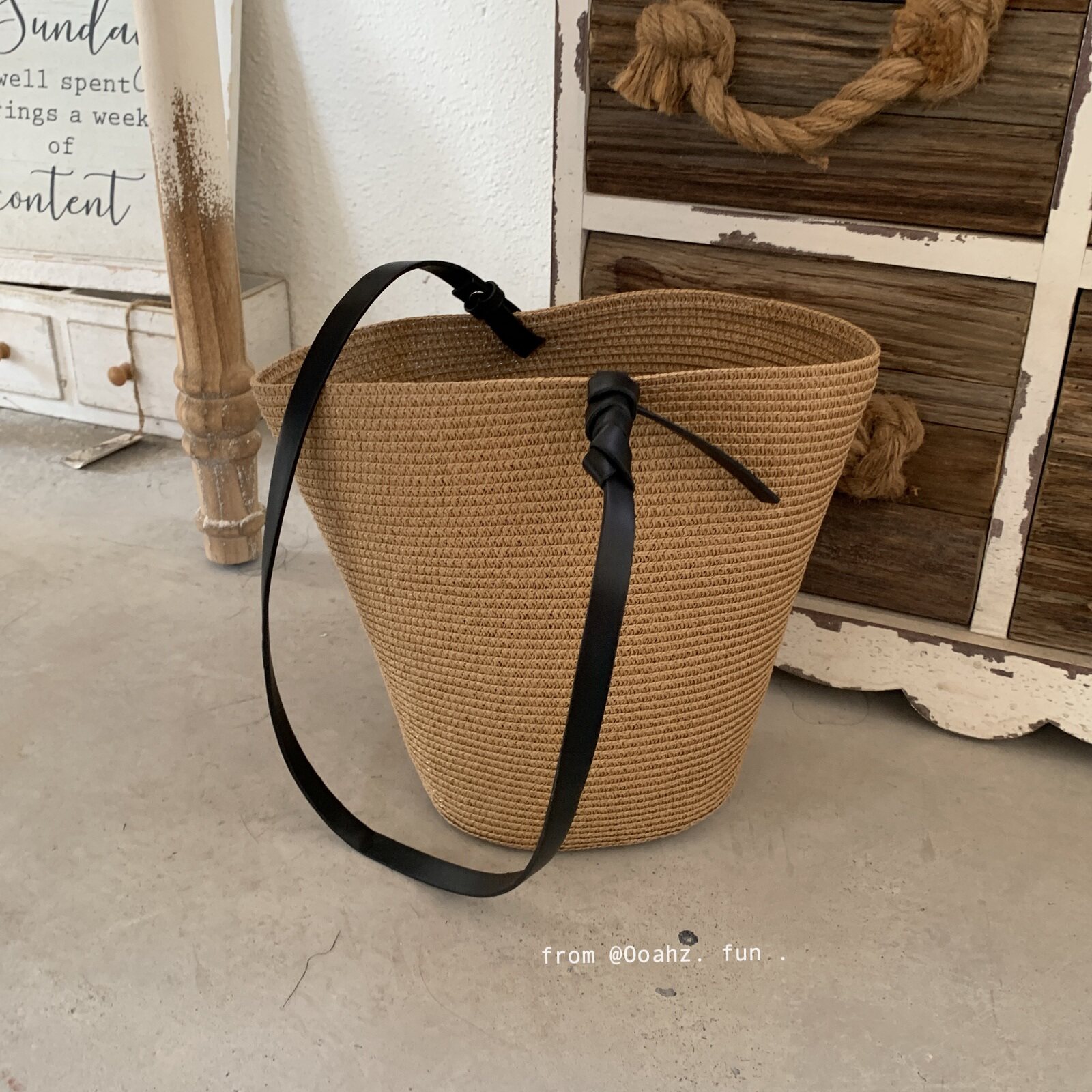 📚 榕树下 慵懒风日本草编包手提单肩包 度假高级感长肩带斜挎水桶包