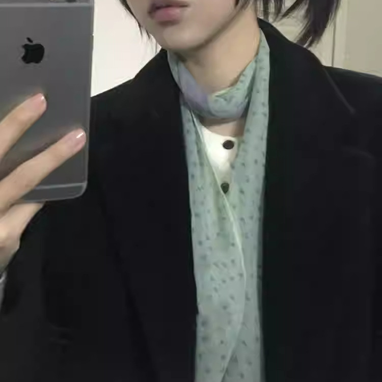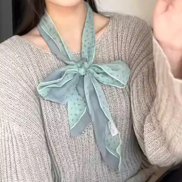 📚 抹茶之森薄荷绿色丝巾春夏薄款氛围感高级韩系围巾细长条脖子配饰