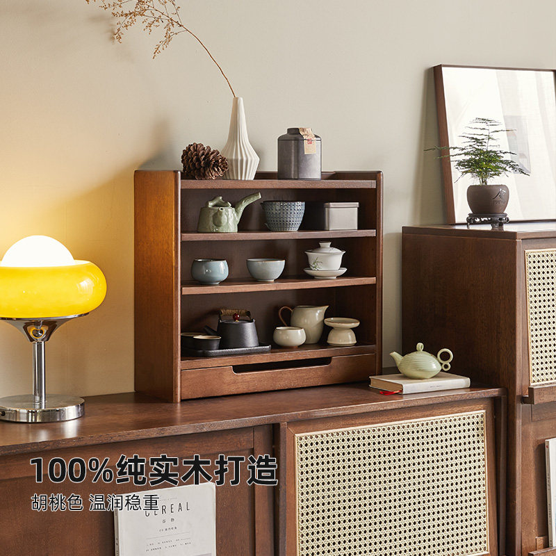 📚 实木桌面置物架多层杯架桌上手办茶具收纳展示架家用靠墙调料架子