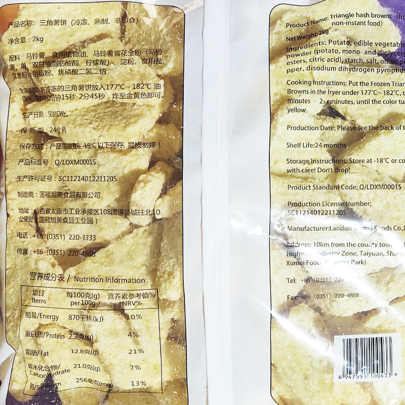 📚 蓝顿旭美三角薯饼2kg F10三角形薯块酒店早餐西餐冷冻油炸半成品