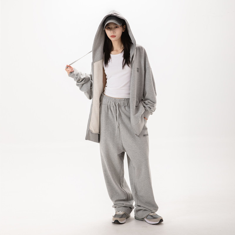 📚 韩国ins风简约连帽宽松卫衣外套男女春秋运动Oversize慵懒套装