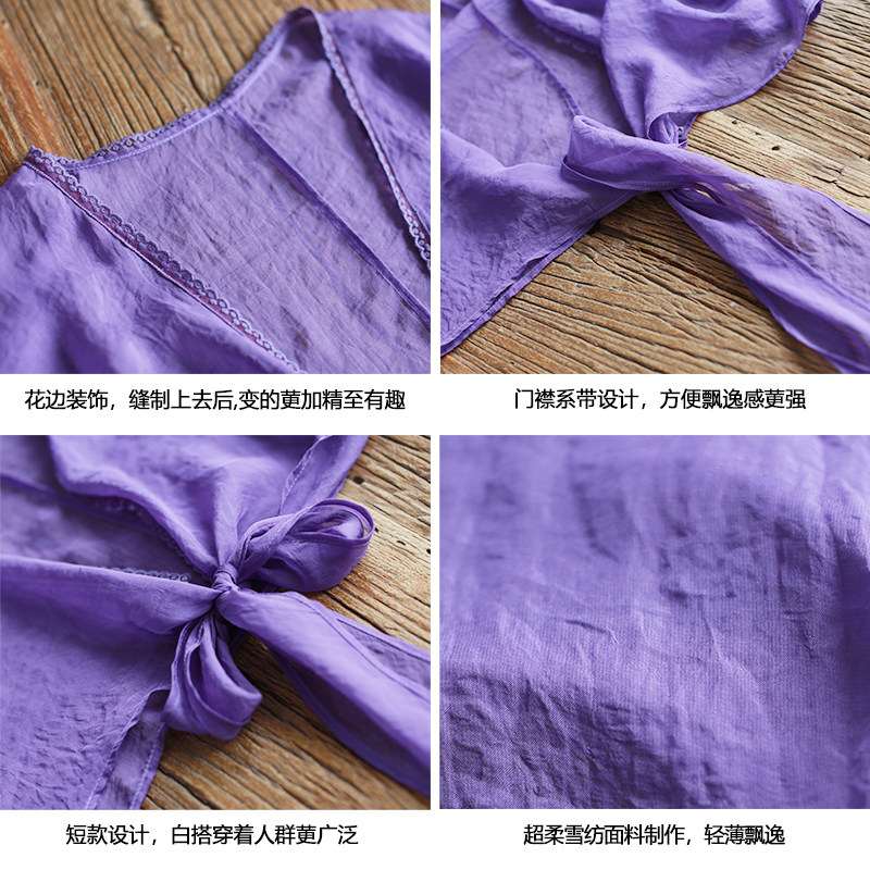 📚 【5折】2025夏新品文艺复古短款连袖衬衫 古风系带雪纺上衣女装
