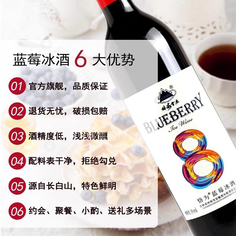 📚 林海雪原恪为蓝莓冰酒8度10度12度甜型蓝莓酒微醺红酒长白山特产