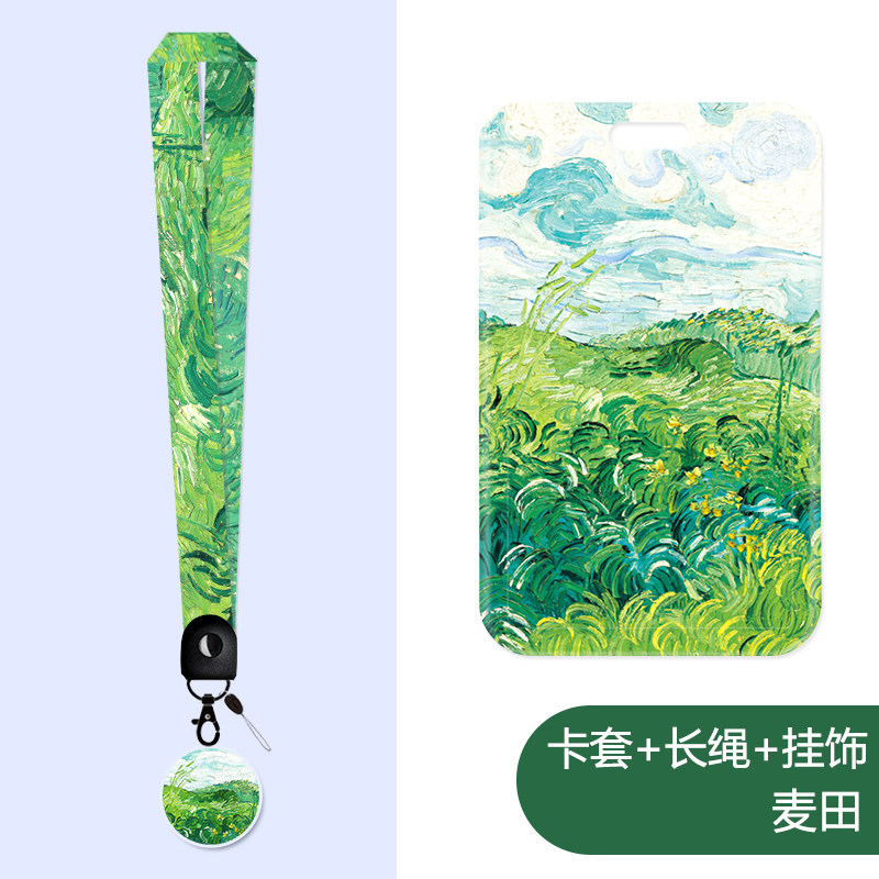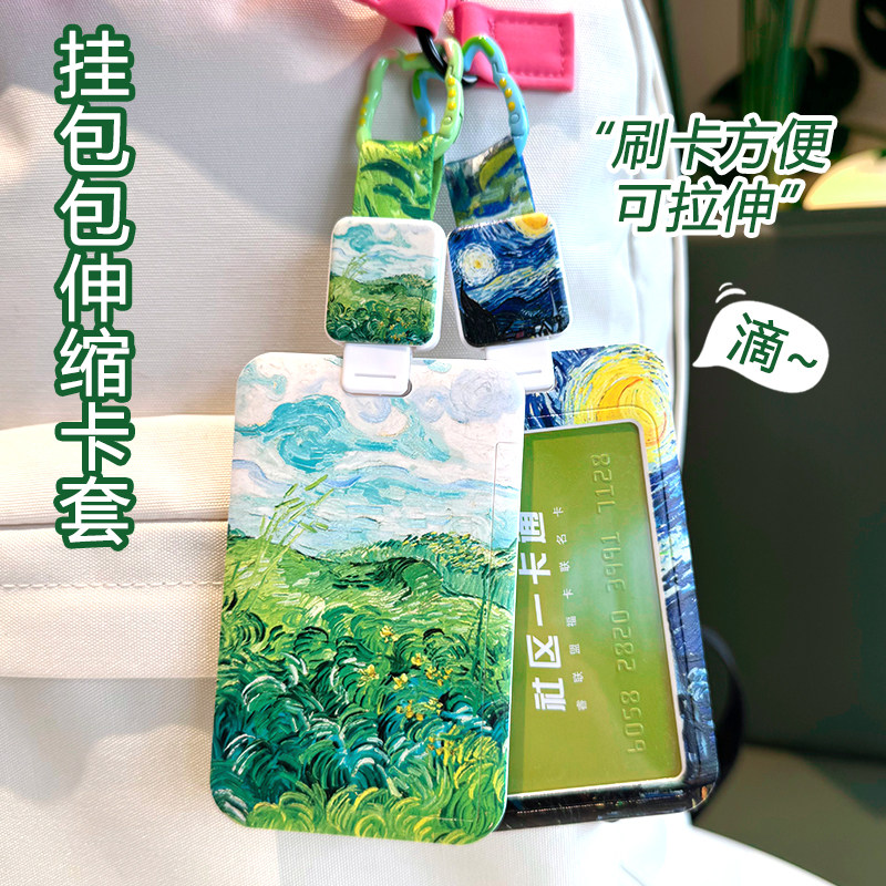 📚 梵高油画麦田卡套随身证身份证件套饭卡水卡门禁挂绳学生钥匙扣硬