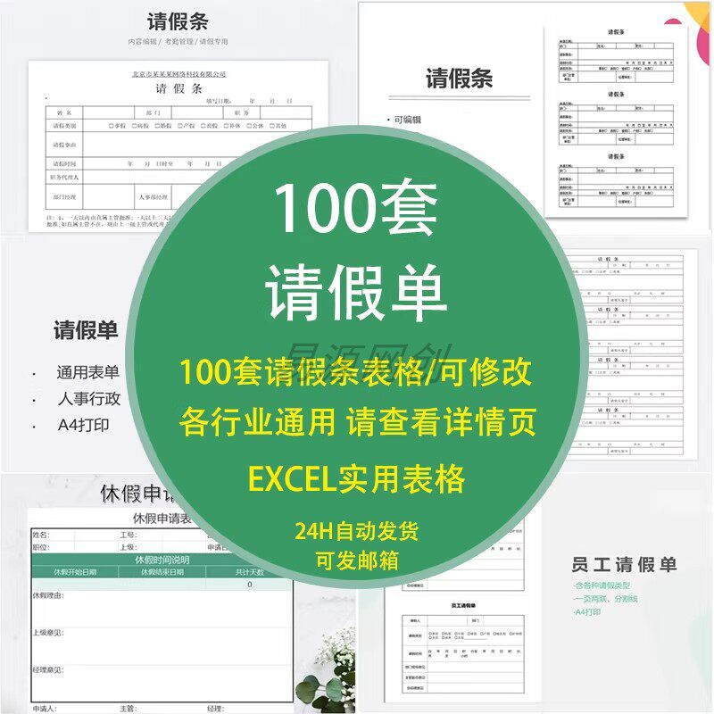 📚 请假条单excel模板表格公司调休年假员工公出等级出差审批学生