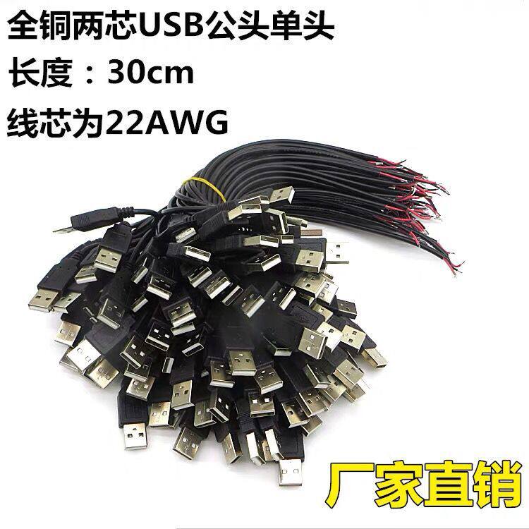 📚 USB 2.0 数据线 供电线 USB公头单头两芯线 全铜 红黑线 30cm长