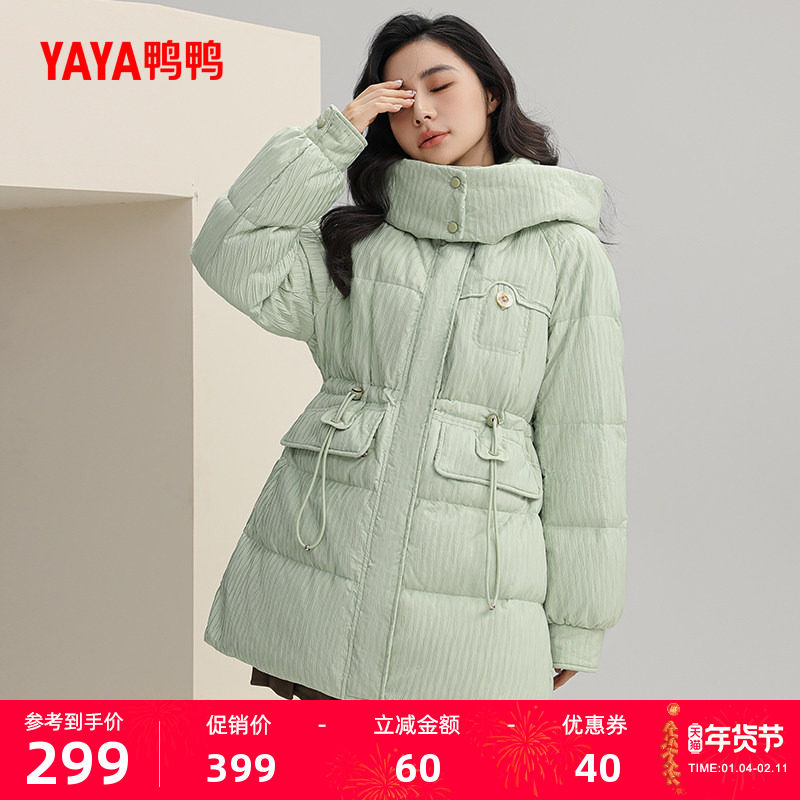 📚 【鸭鸭甄选】鸭鸭羽绒服女士2024冬季新品中长款连帽时尚休闲鸭绒