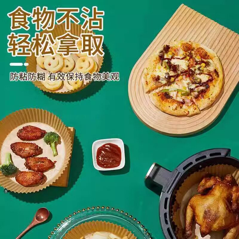 📚 空气炸锅专用纸盘家用耐高温吸油纸加厚烘焙硅油纸食品级圆形烤纸