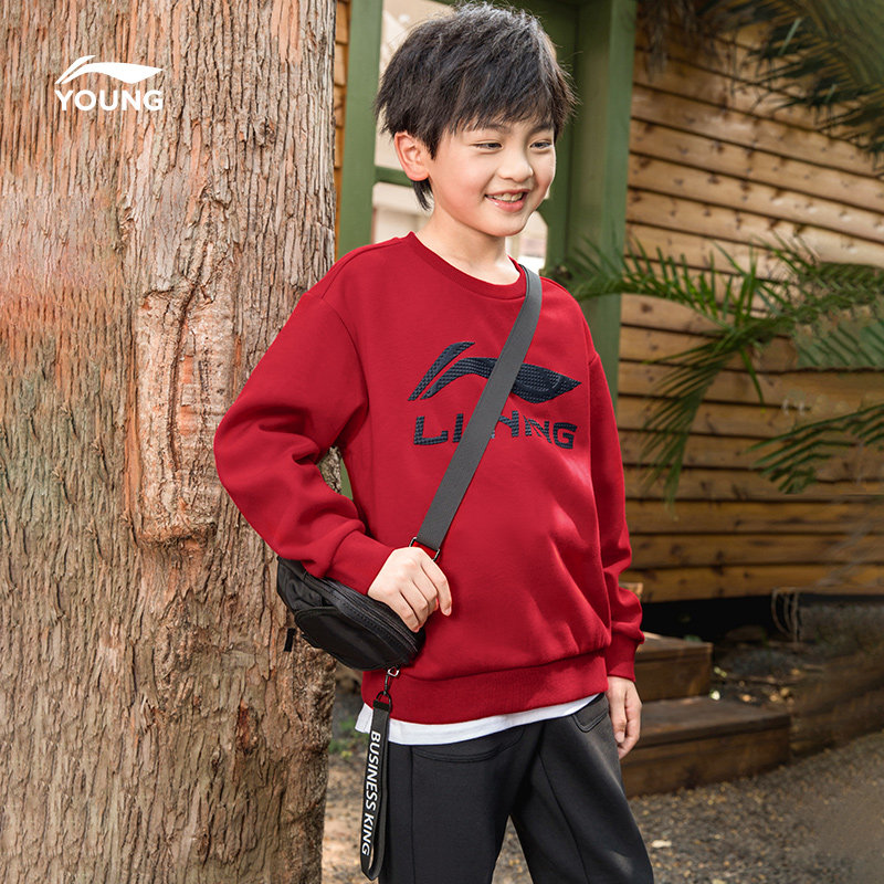 📚 李宁儿童新年红色加绒卫衣2026新款冬季男童装衣服青少年女童冬装