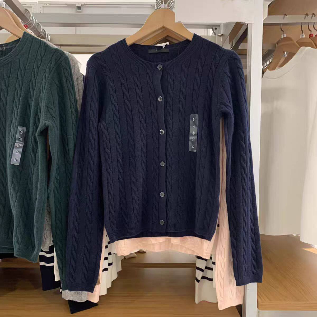 📚 2026春季新品女装纽花圆领针织开衫/毛衣毛衫外套481477 488123