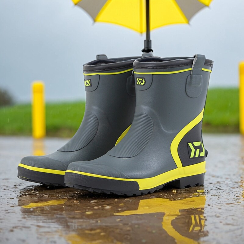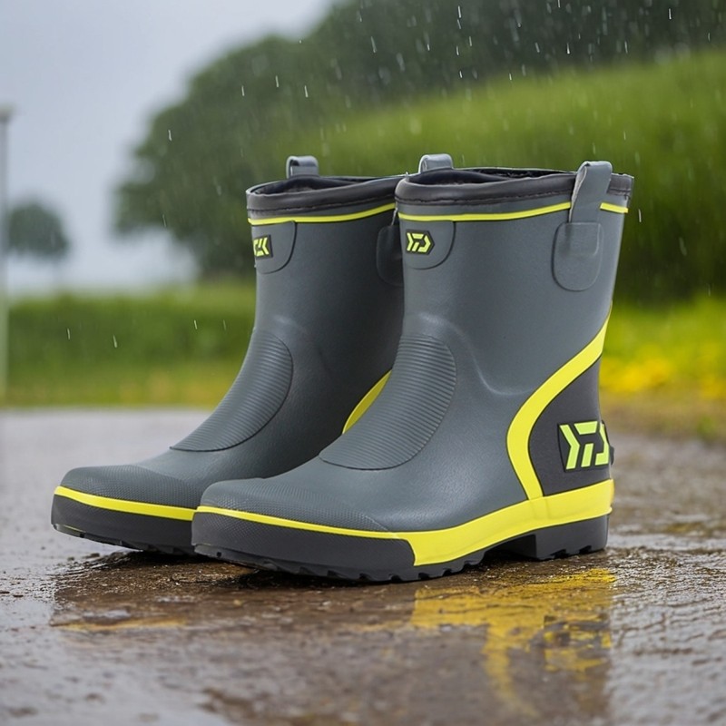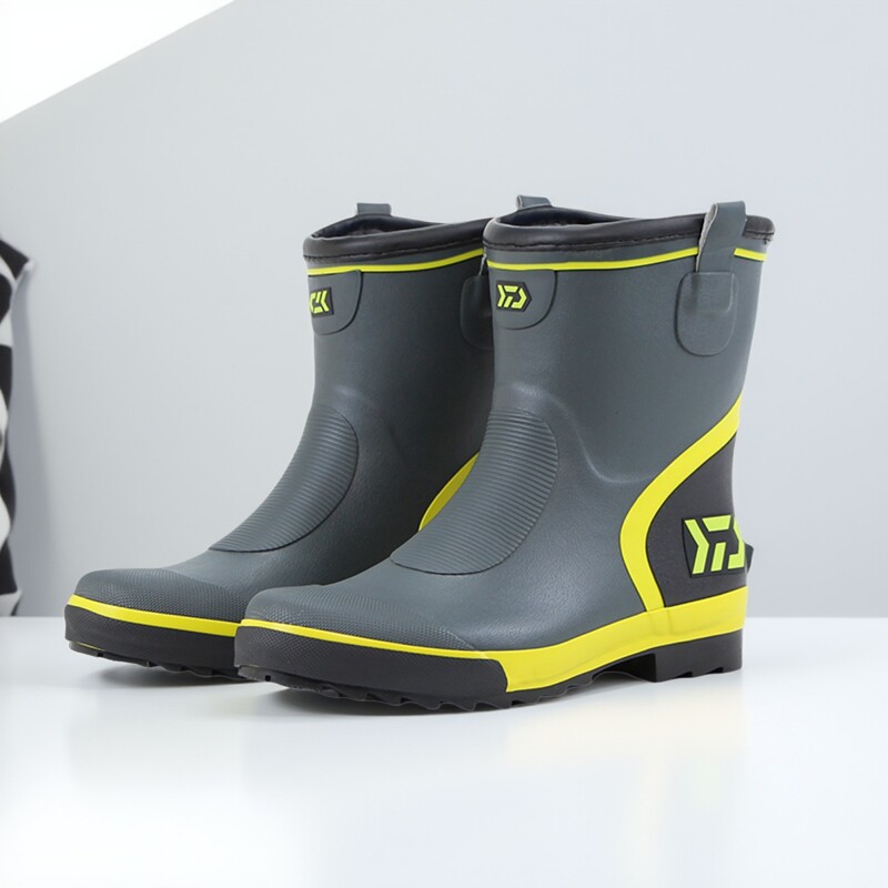 📚 男士拼色雨靴中筒平底雨鞋防水防滑秋冬加绒胶靴船用海钓夹板鞋