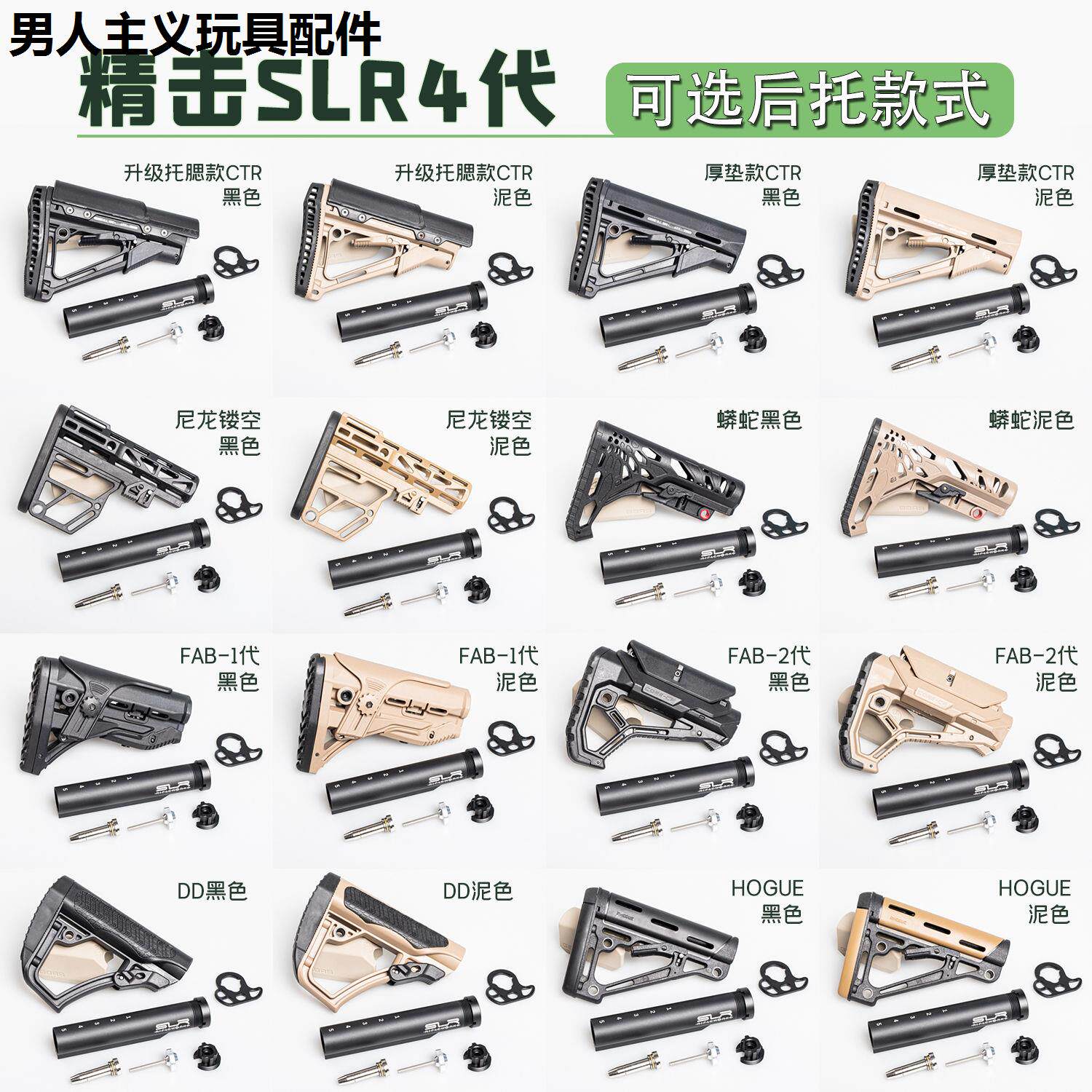 📚 精击SLR4代战术后托四代金属托芯转接CTR MOE FAB后托背带扣套装