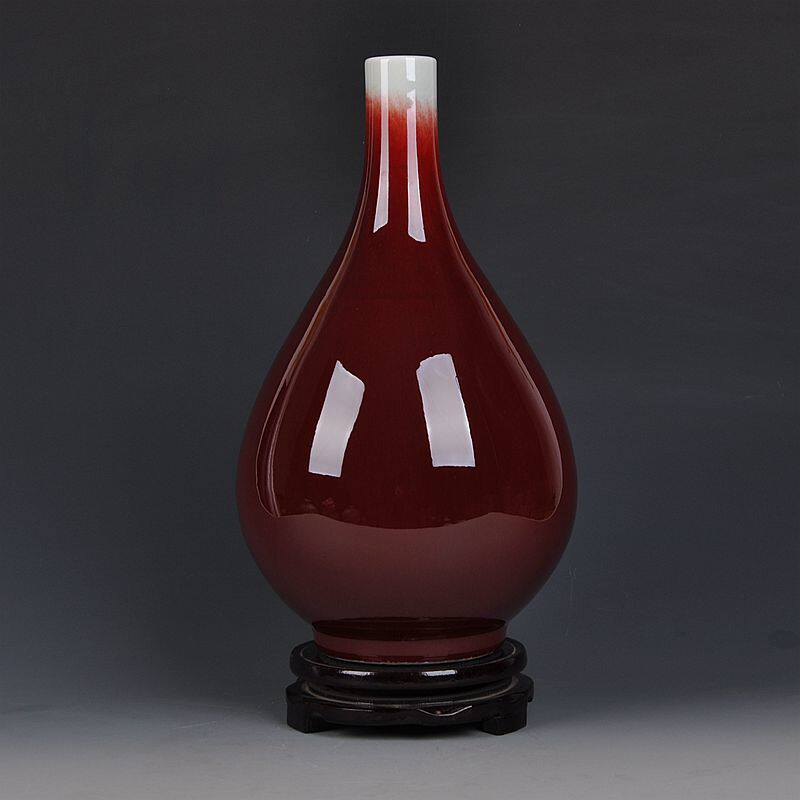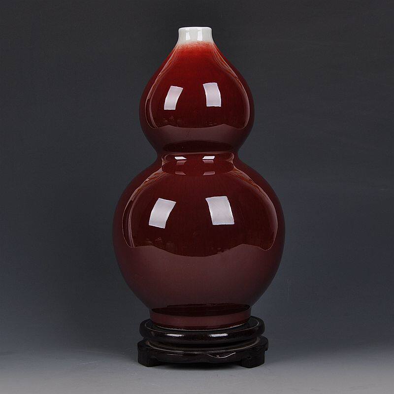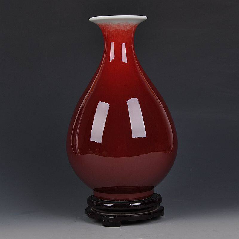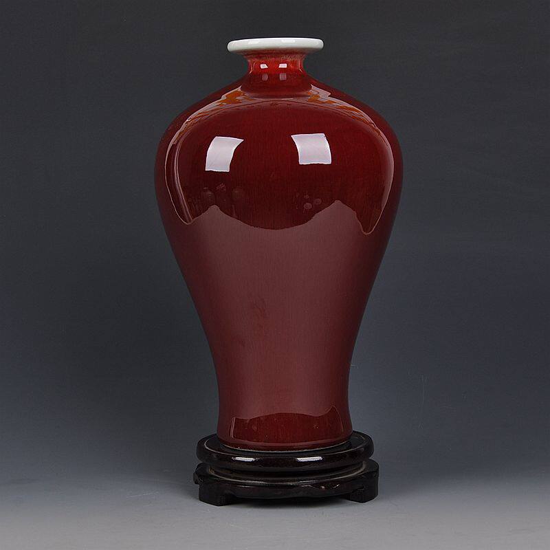 📚 景德镇陶瓷器窑变裂纹郎窑红花瓶家居装饰客厅古典工艺品摆件送礼