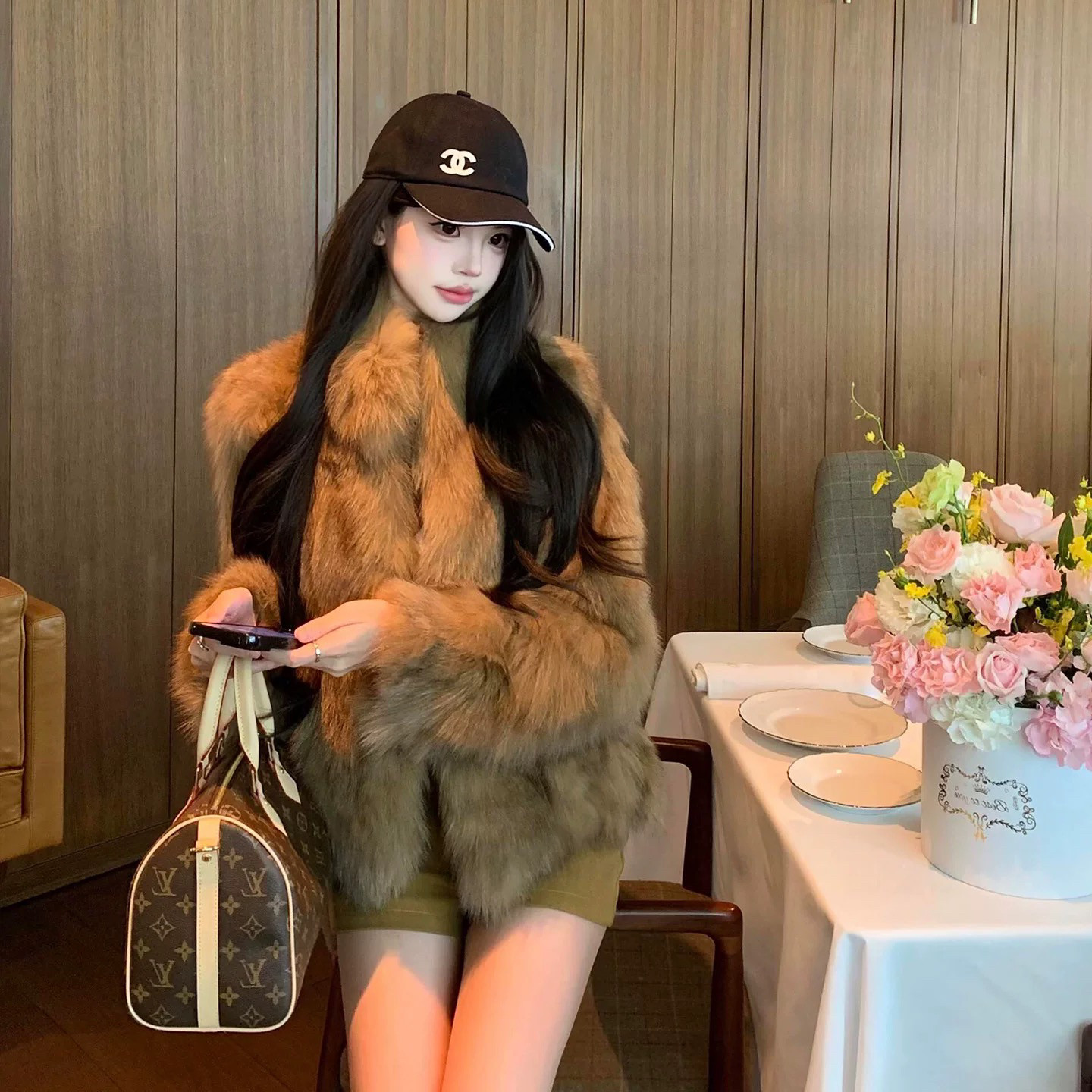 📚 TNNG皮草“暮秋琥珀”2025冬季新款狐狸毛皮草外套女短款年轻显瘦