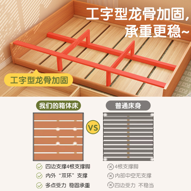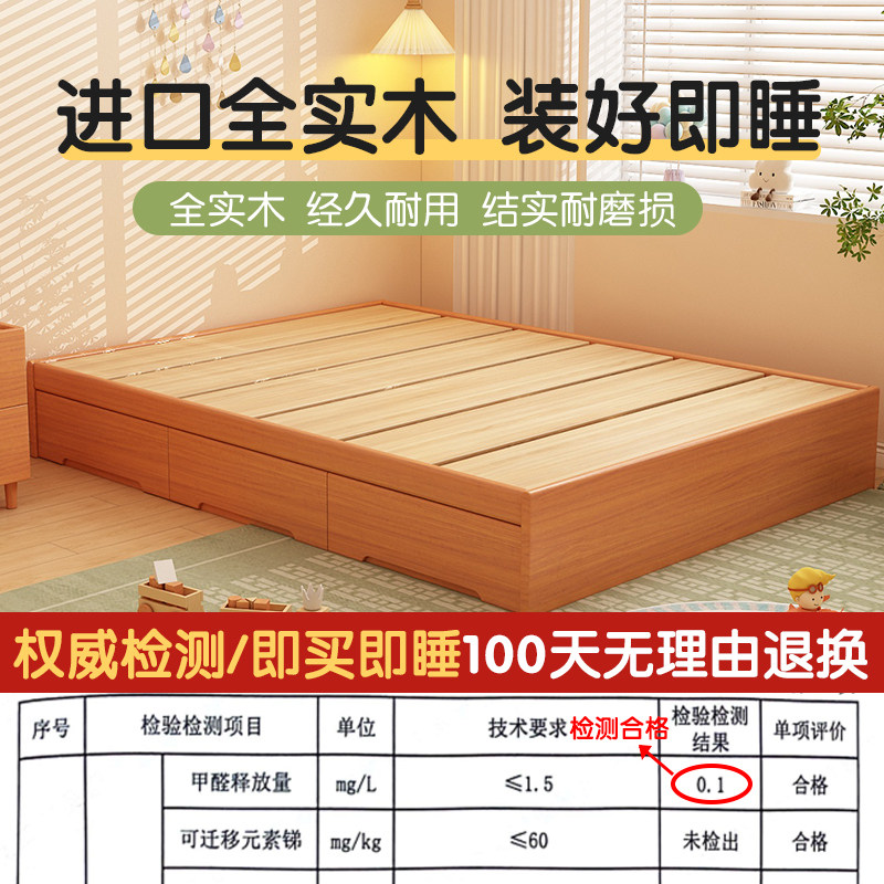 📚 榻榻米落地床无床头储物床大抽屉地台床新型全实木排骨架床架箱体
