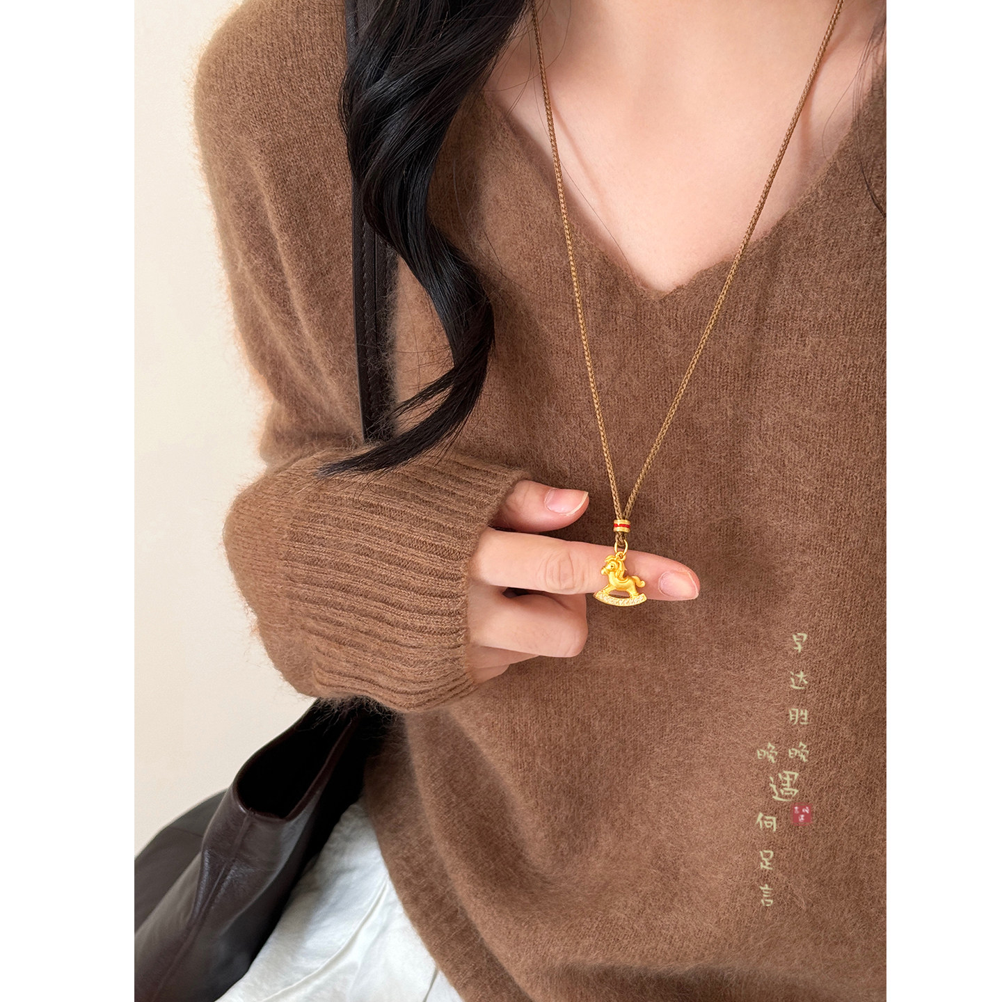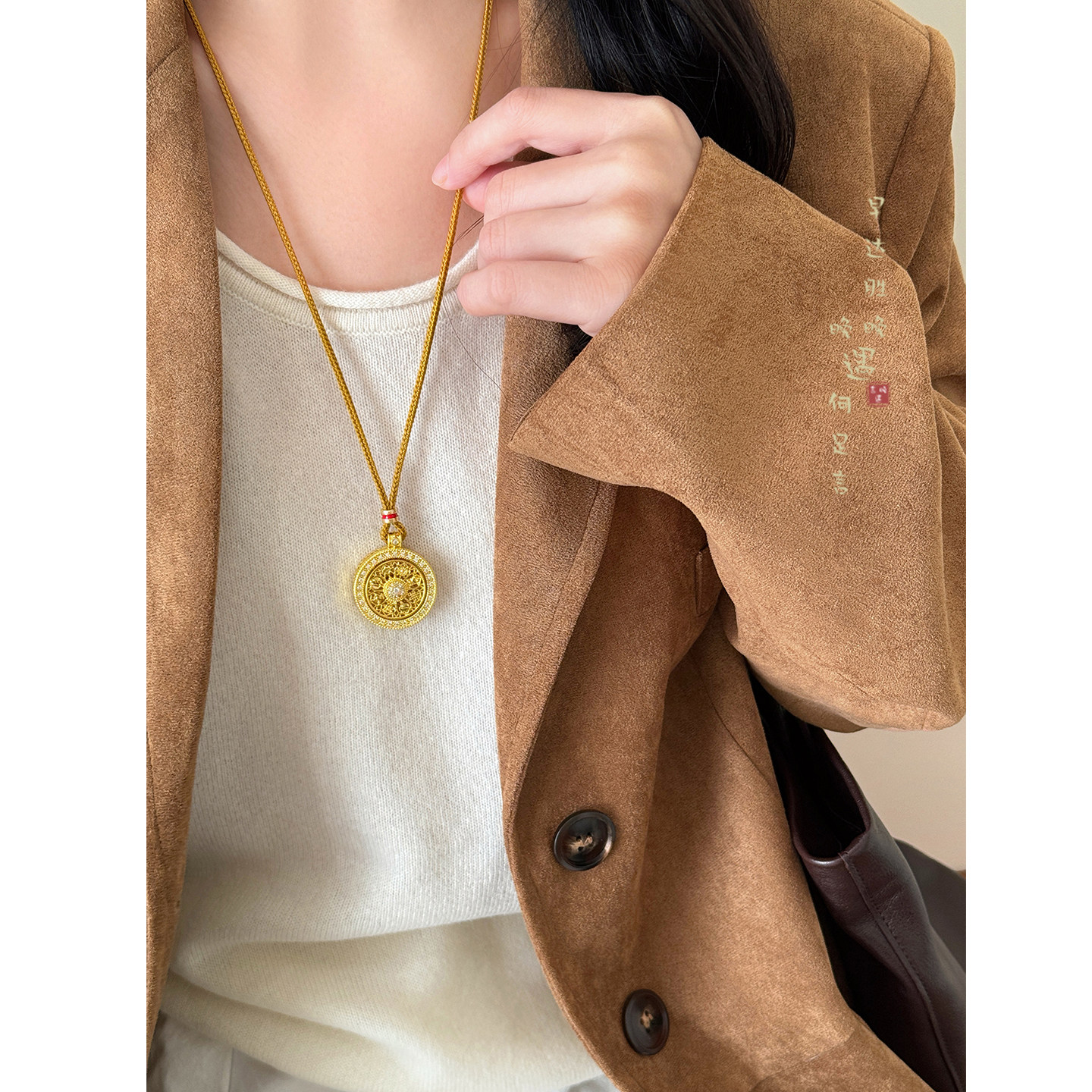 📚 新中式沙金八宝罗盘吊坠项链女国风轻奢高级感长款毛衣链挂绳配饰