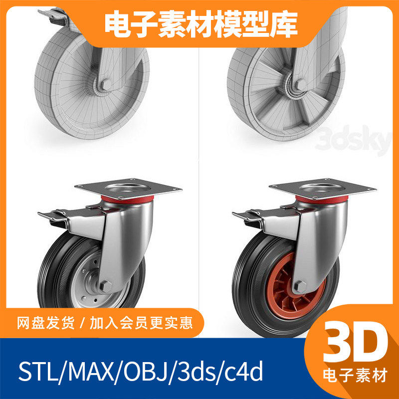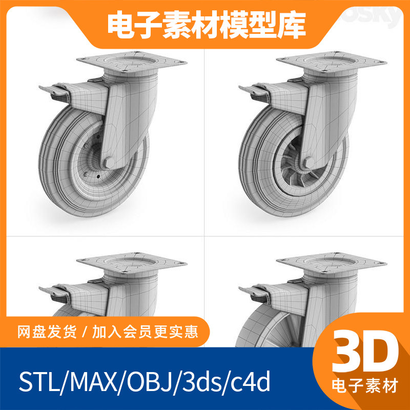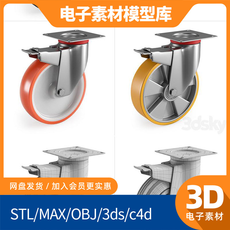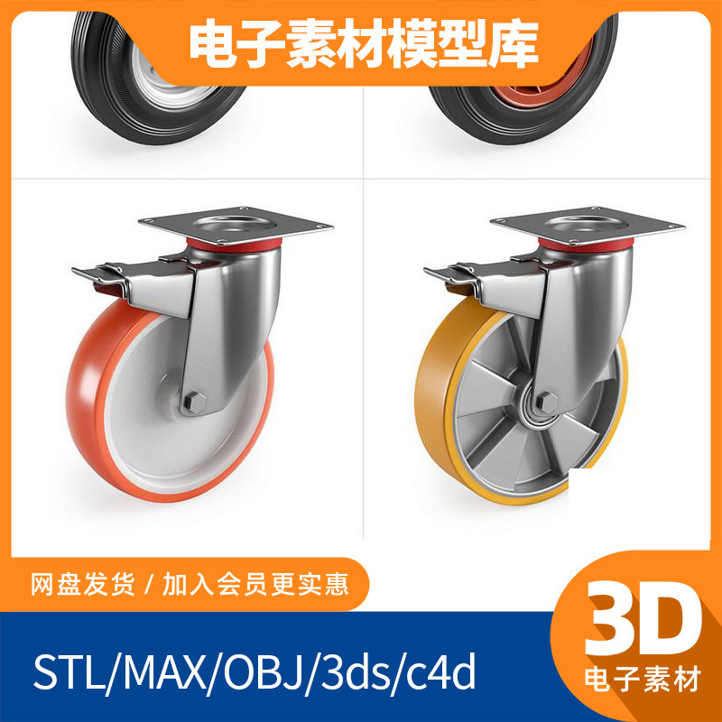 📚 工业脚轮套装模型3d打印sw素材3d大学生毕业轮子obj图库建模step