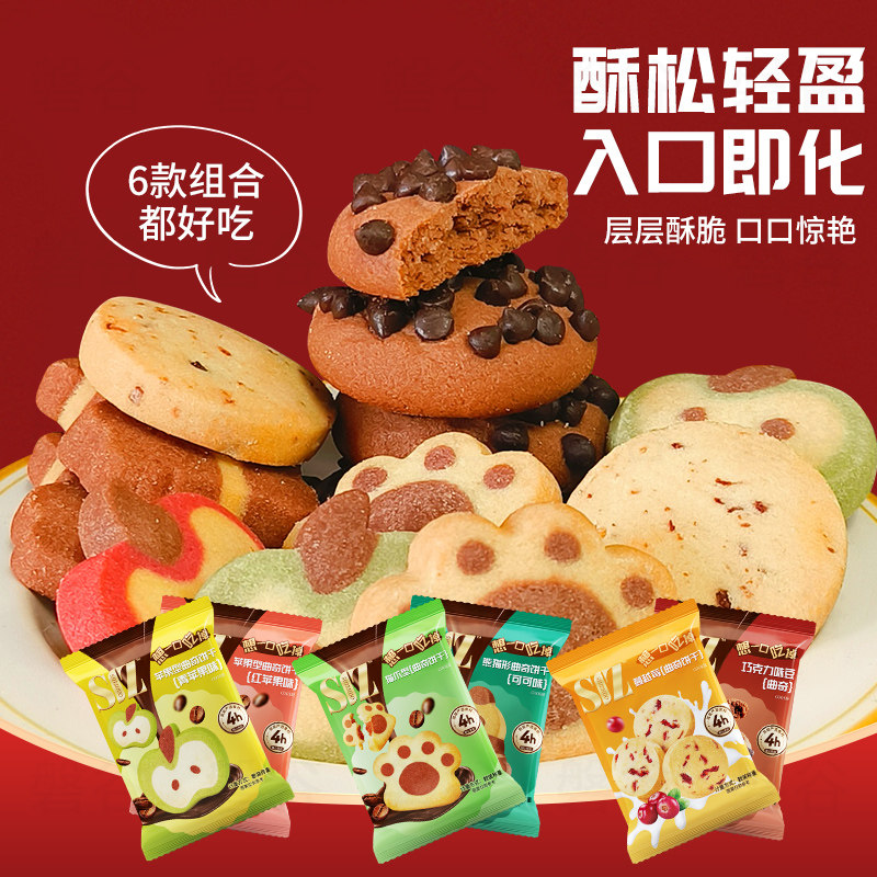 📚 新诗酌六种曲奇饼干蔓越莓巧克力苹果饼干零食多种形状曲奇饼干