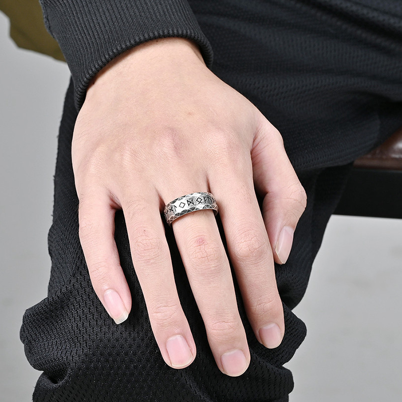 📚 泰爱你复古北欧维京文字卢恩符文戒指潮流男款酷炫个性钛钢指环