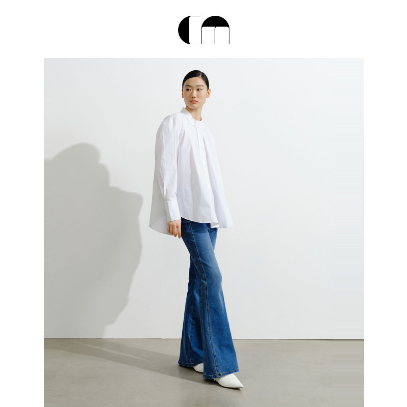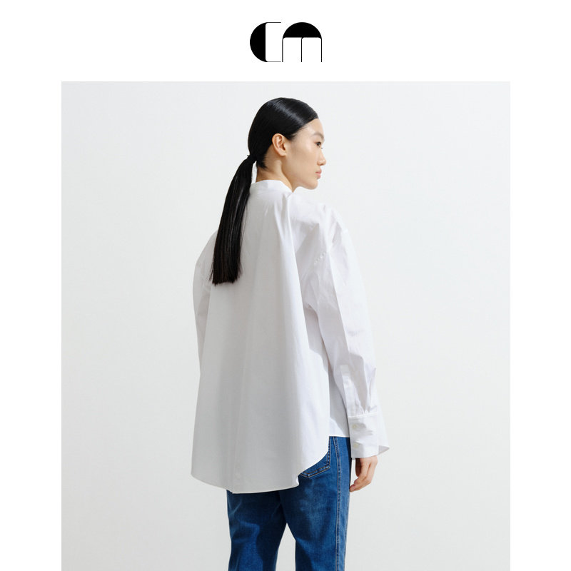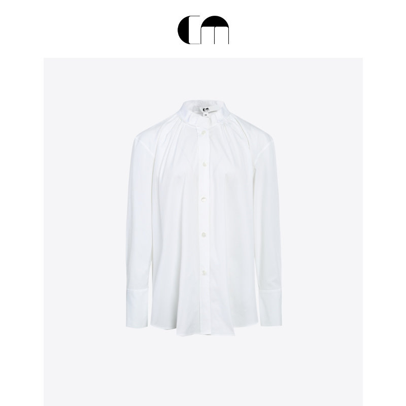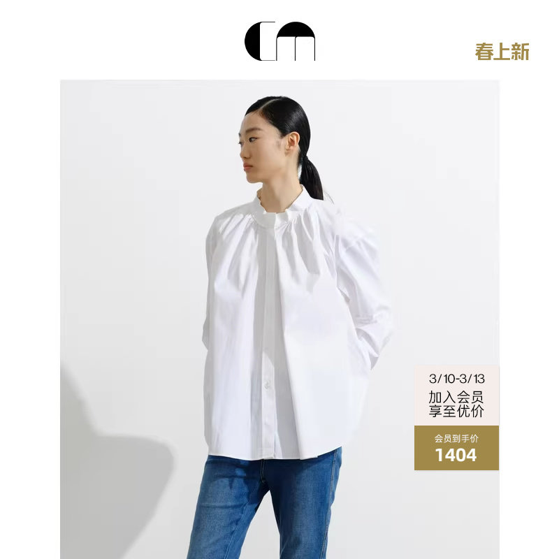 📚 COMME MOI吕燕设计师早春季女装挺括舒适泡泡袖白色淡人衬衫上衣