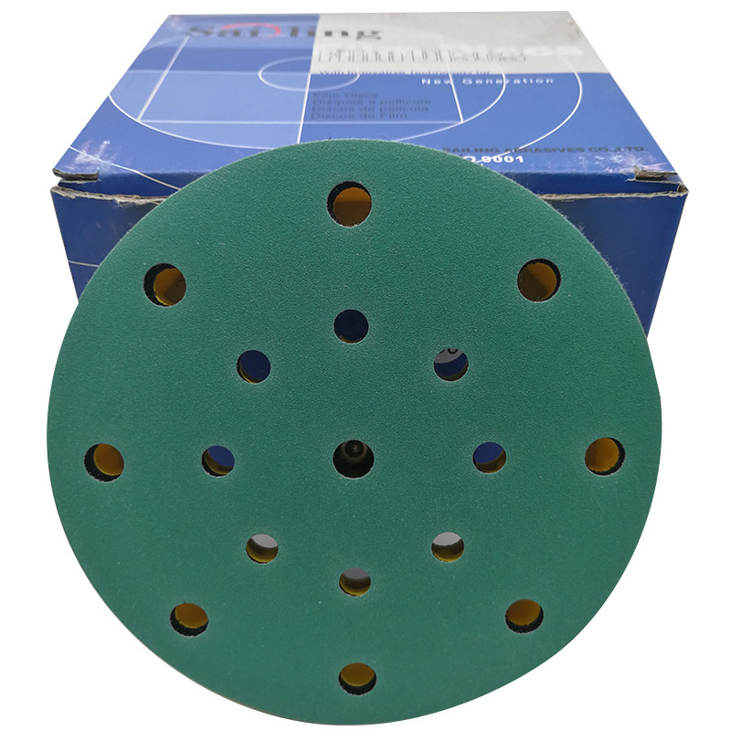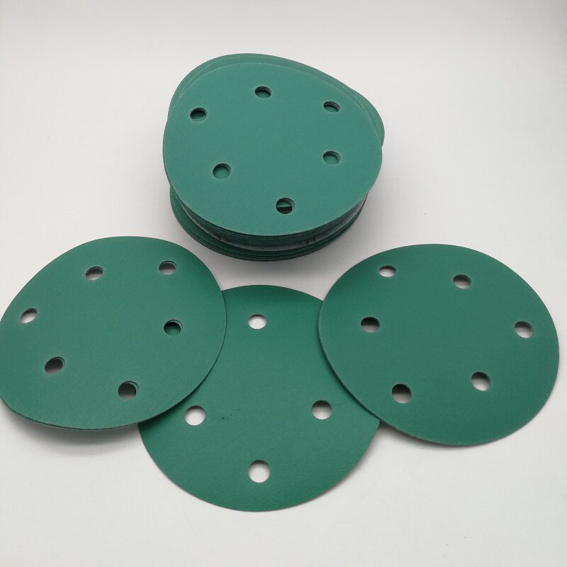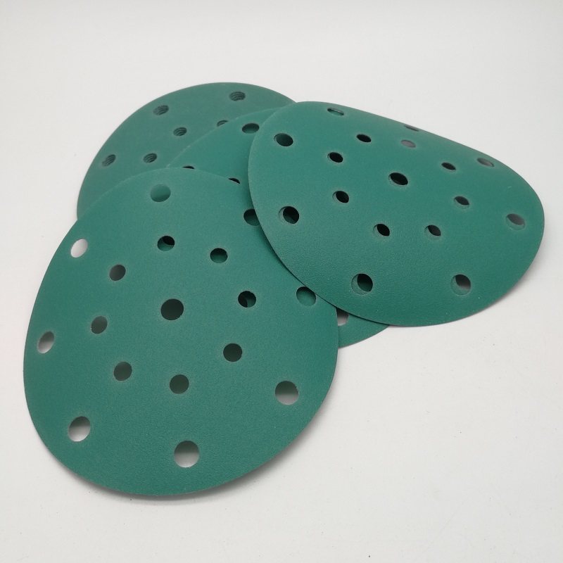 📚 干磨砂纸125MM绿砂进口干磨抛光背绒6寸17孔5寸6孔打磨片150MM