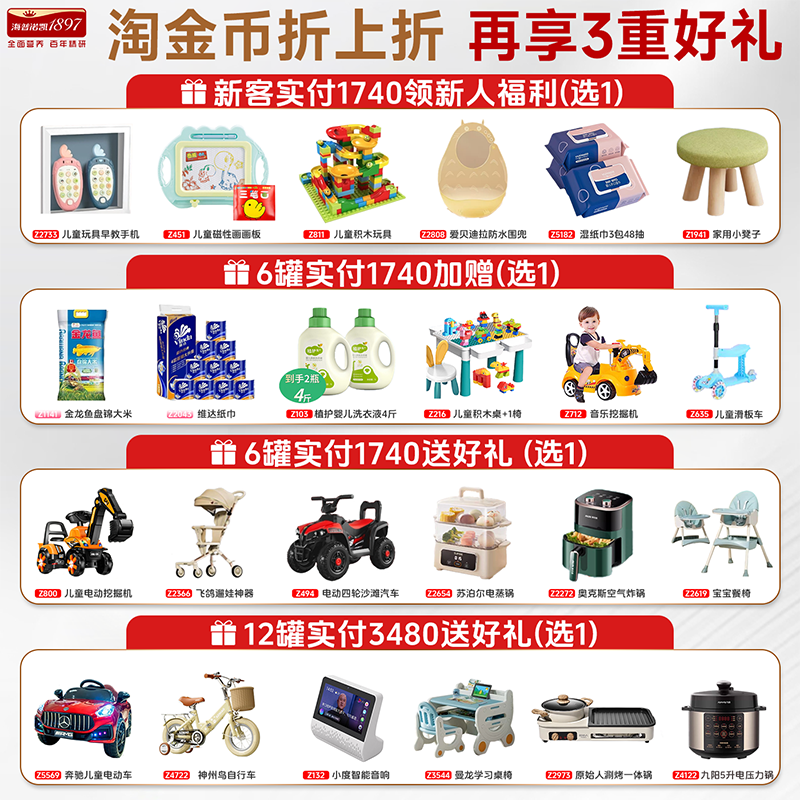 📚 新客4兑1】海普诺凯1897荷致奶粉3段860克*6罐官方旗舰店三段