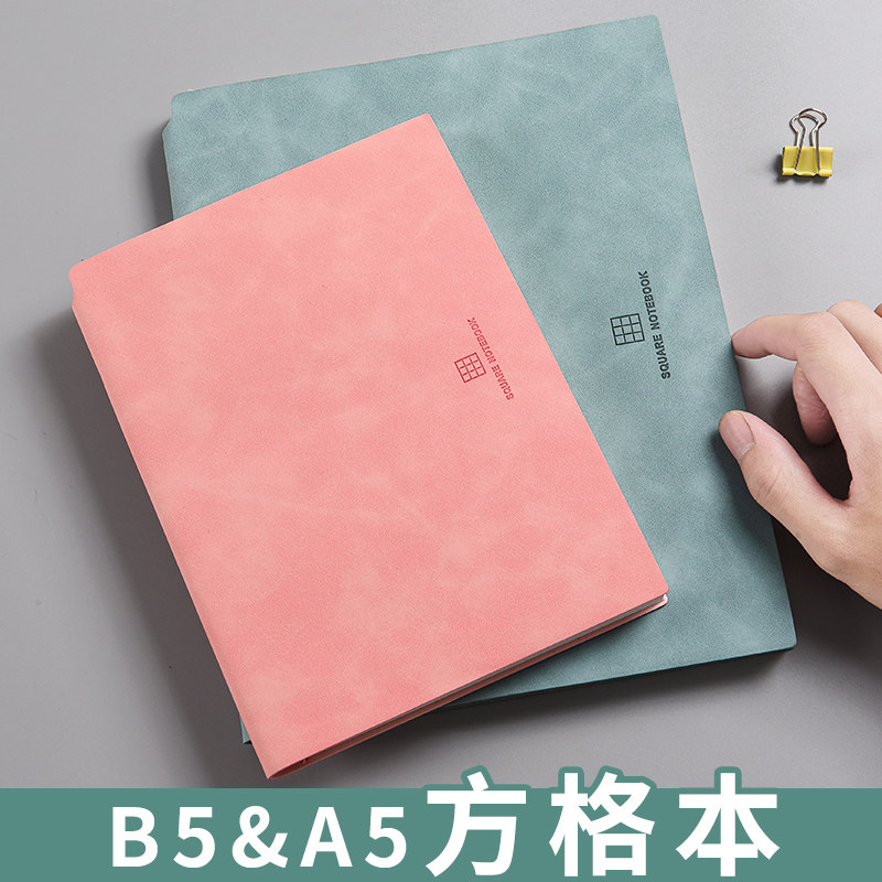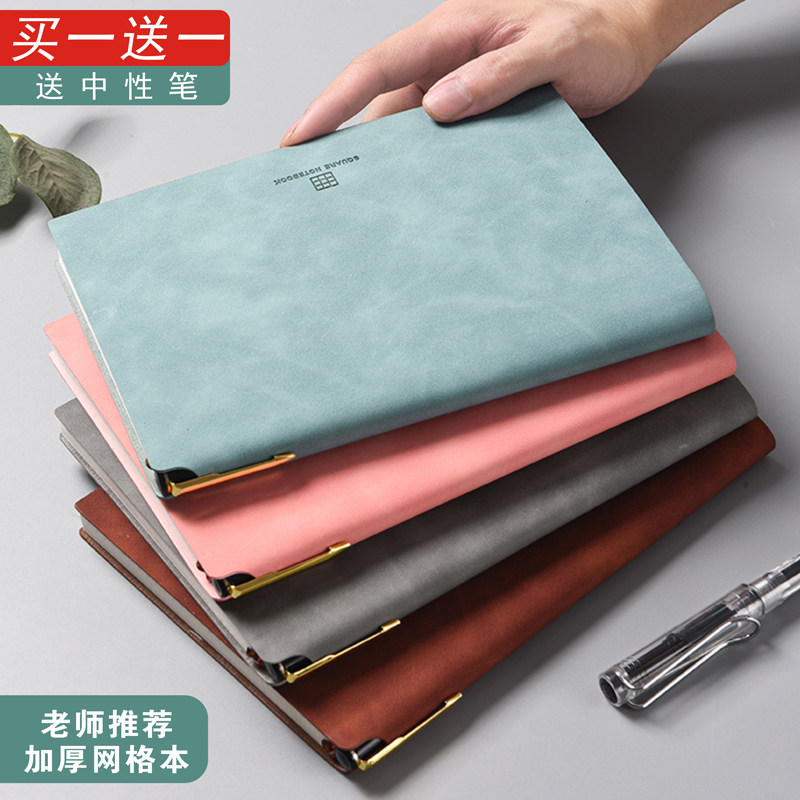 📚 网格本笔记本子手绘画画方格本子a5加厚小方格简约大学生课堂文艺精致记事本小清新皮面可爱少女心手帐本子b5