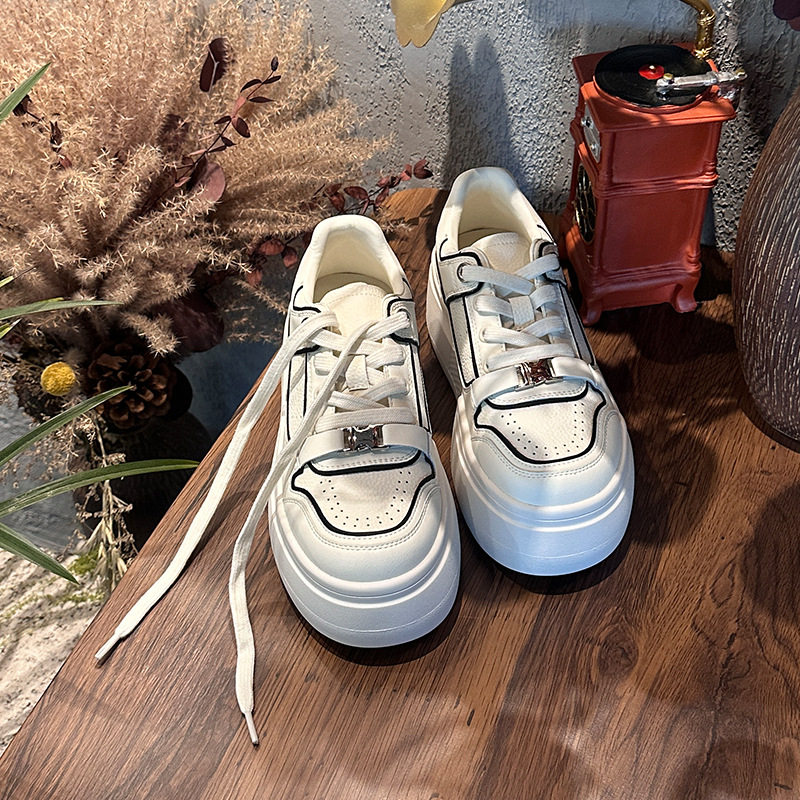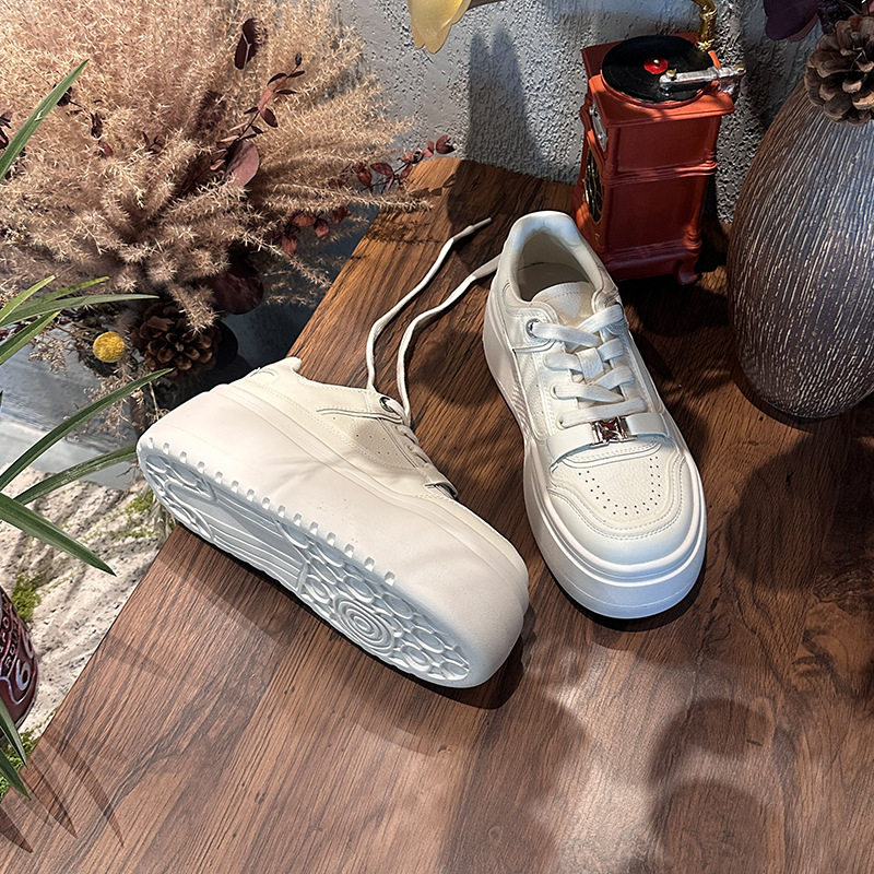 📚 乌拉草猪皮鞋垫真皮小白鞋女2026春季新款厚底增高女鞋休闲面包鞋