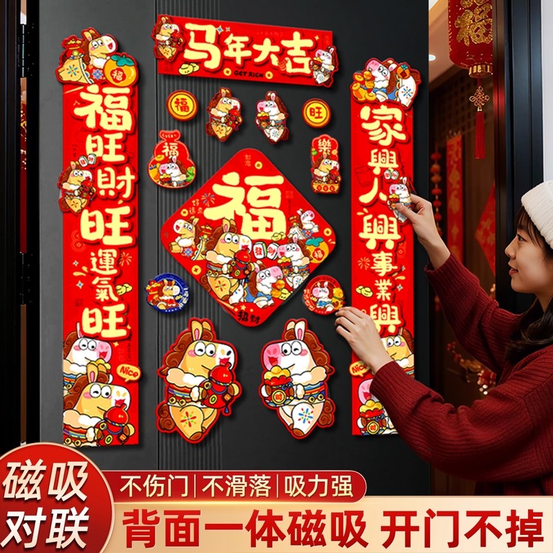 📚 新春马年2026新款磁吸对联新年过年春节门联入户门春联福字贴全磁
