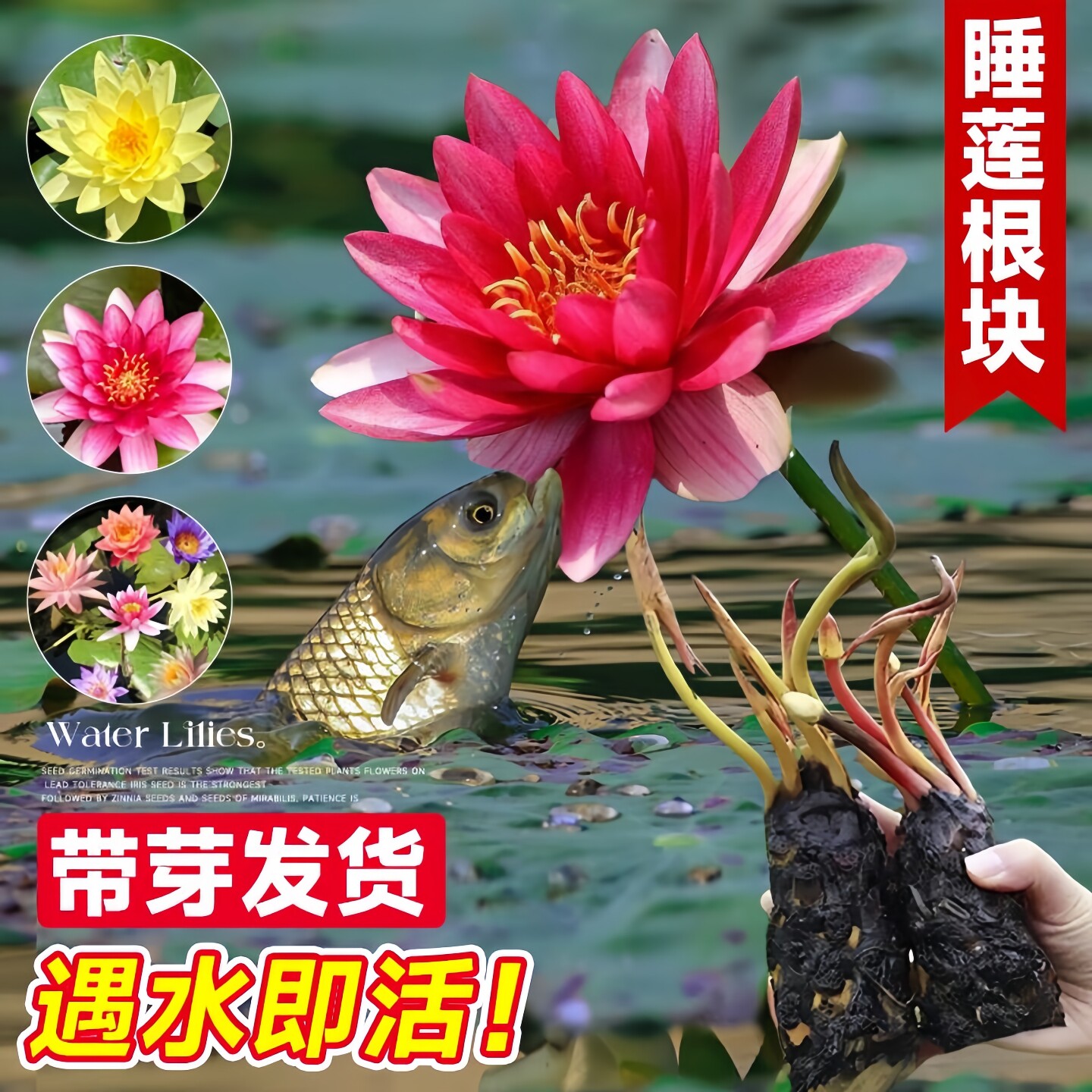 📚 睡莲水培植物荷花带花水池塘莲花根块水养花卉盆栽碗莲花根茎带芽
